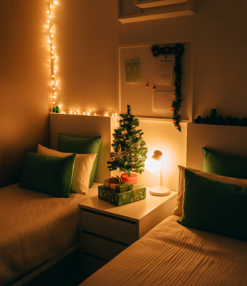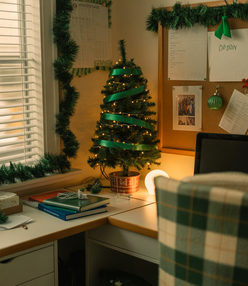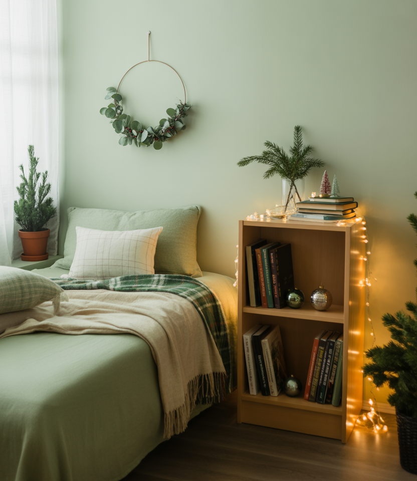 Students are increasingly fond of subtle seasonal décor—especially soft, small green touches that indicate Christmas without overt themes. Think tiny wreaths, ribbon ties, and muffled holiday textiles that blend into year-round aesthetic décor. It is a gentle, tasteful approach meant to be ideal for minimalist dorm dwellers.