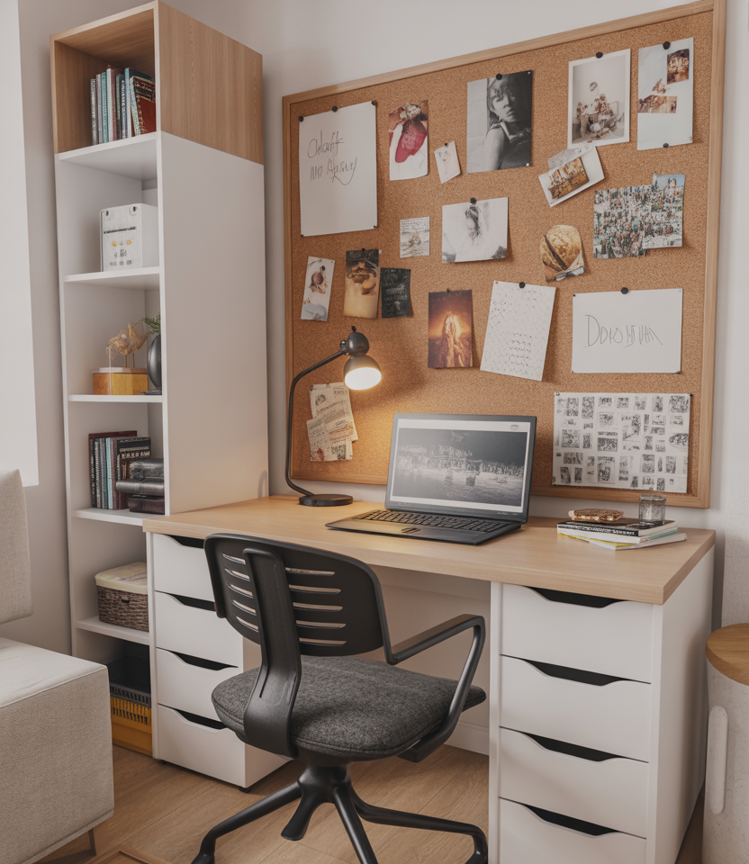 A corkboard remains a practical and stylish essential, especially for shared dorm rooms where schedules and memories collide. Students decorate boards with photos, reminders, fabric squares, and inspiration clippings that shape a personalized workspace. I’ve seen boards evolve throughout the semester like a living design journal, adding both function and personality.