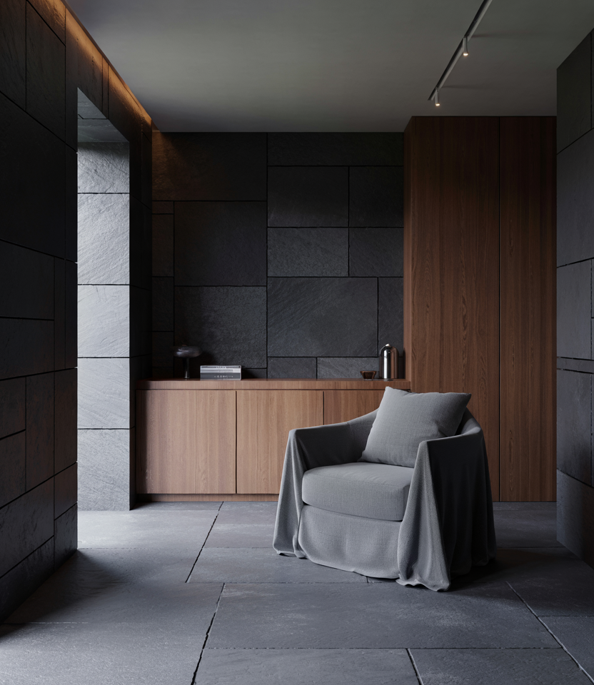 Modern minimalist homes are leaning into richer, shadow-like tones that still feel refined. Deep slates mixing hints of dark, softened grey, and near-black blue create a dramatic façade while maintaining warmth. These colors work beautifully on flat-panel siding, concrete accents, and streamlined architecture that relies on subtle shadow play.