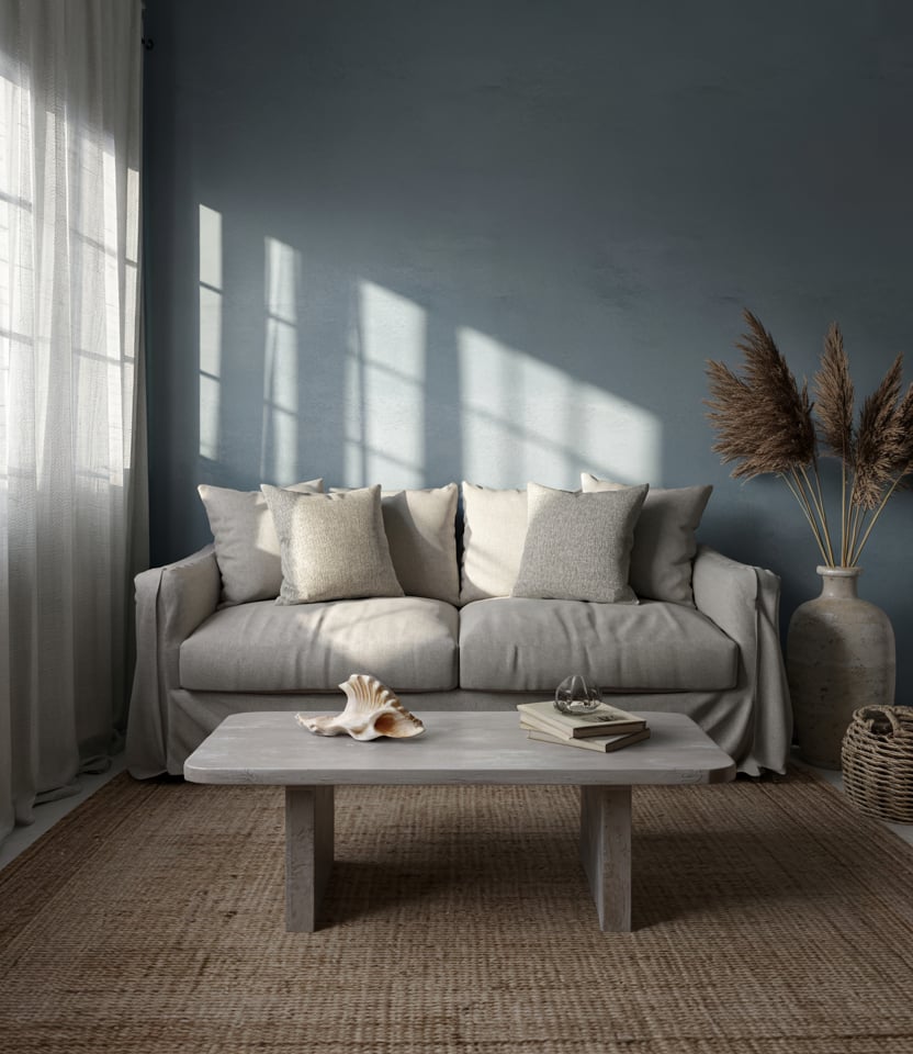 Coastal design is shifting moodier, with deeper tones adding sophistication to beach-adjacent homes. Instead of bright nautical colors, homeowners are embracing nuanced hues like dark blue, stormy blue-grey, and softened coastal palettes for a grounded, modern look. These shades feel elegant without sacrificing the relaxed charm people love about coastal living.
