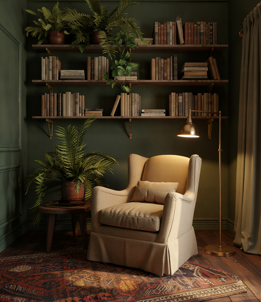 Americans are more interested in deeper, moodier greens than the jewel-toned styles of the past. Today’s preferred greens lean earthy and organic. Shades of olive green, muted green, and deeper dark blends echo forest canopies and look stunning against natural wood and stone. They add drama while remaining deeply connected to nature.