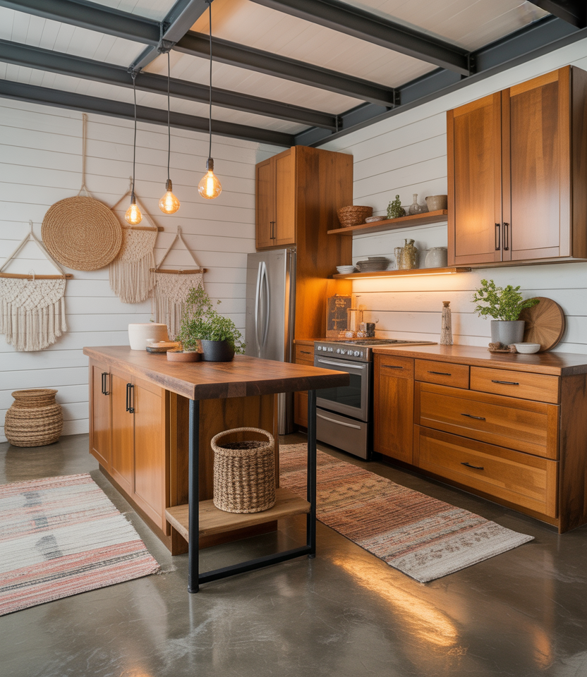 A contemporary, cottage, sometimes boho, and lightly industrial blend is emerging—mixing clean edges with playful textiles, woven materials, and dark metal touches. It works well for eclectic homeowners who want structure but still crave softness. This style adapts easily to small spaces, pairing modern functionality with story-filled charm.