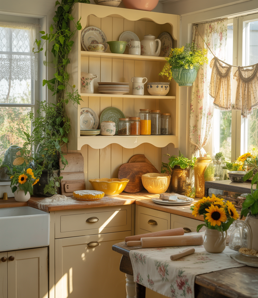 The cottage-style, or cottagecore, farmhouse kitchen stays strong in 2026 for home bakers who crave a storybook feel. Think vintage floral curtains, scalloped shelves, and a dedicated baking zone with jars of flour and sugar on display. Soft yellow accents, leafy green plants, and well-worn cutting boards create a comforting rhythm to weekend projects like pies and bread. This approach suits both narrow galley kitchens and wide farmhouse layouts, turning a simple corner into a ritual space. It’s less about perfection and more about the joy of messy counters, handwritten recipes, and warm smells drifting through the house.