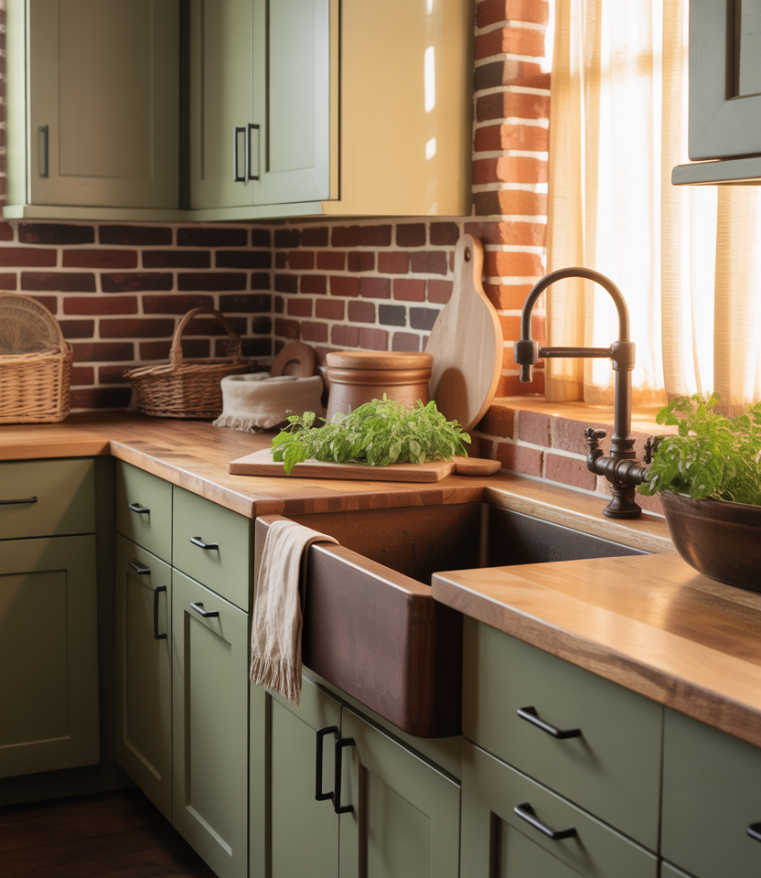 The rising popularity of brick backsplash elements reflects a craving for authenticity. Exposed brick or thin brick veneer adds instant character, especially in open kitchens needing visual interest. It pairs beautifully with black hardware, sage green cabinets, or red accents. Many remodelers share that brick grounds the space and adds timeless texture.