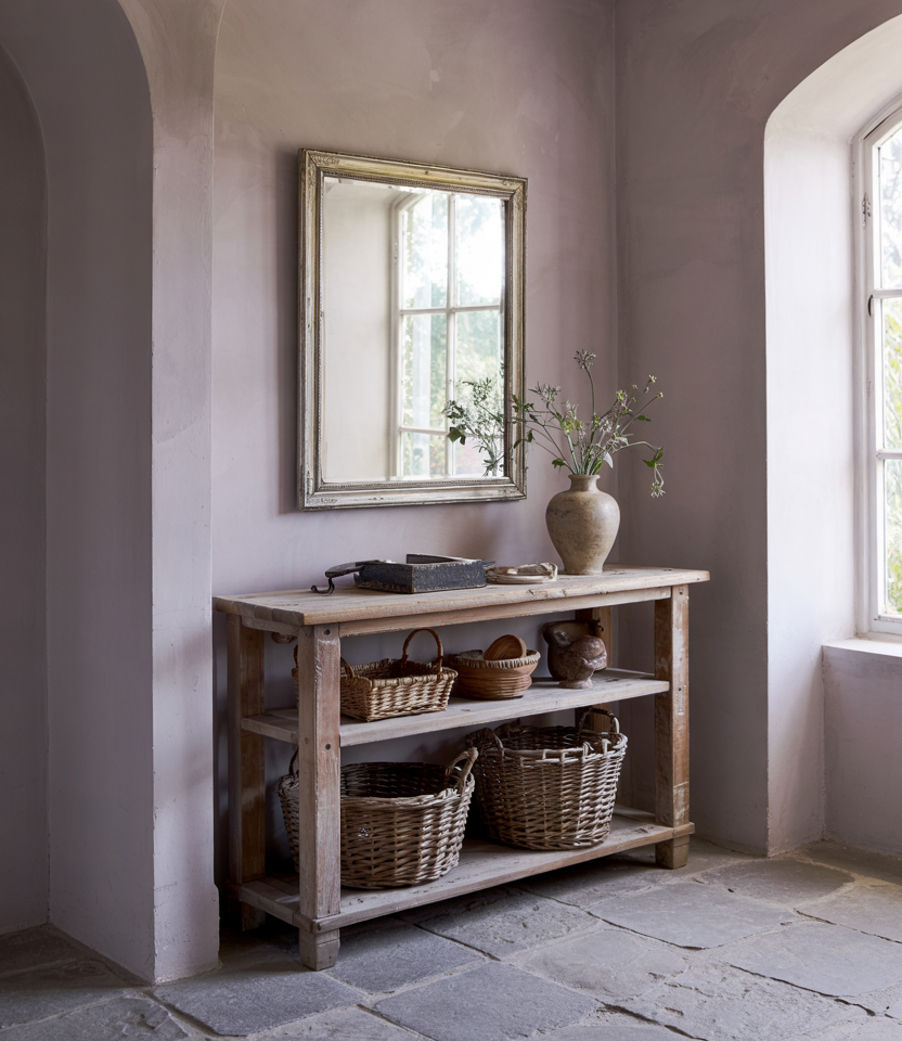 A French country entryway sets the tone with soft hues and layered textures, perfect for small homes wanting gentle character. Touches like rustic baskets or a living room farmhouse-style bench echo the coziness people crave. Pair pale lavender walls with raw wood consoles for a welcoming yet refined look.