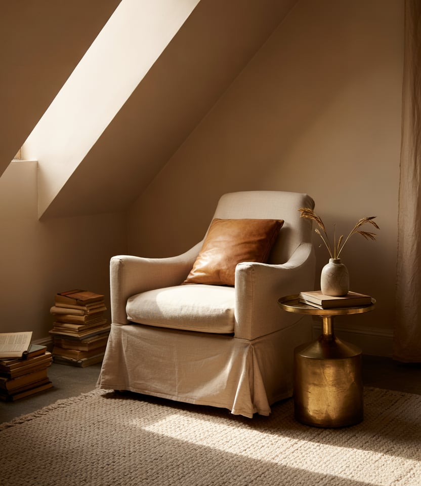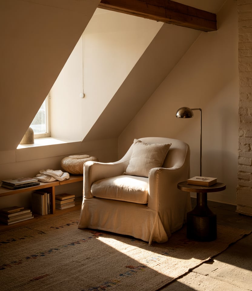 A tucked-away loft becomes a serene reading haven with cushy chairs, woven baskets, and soft lighting. Add subtle hints of living room table lamp styling or the relaxed mood of moody textiles to anchor the nook. It’s the perfect retreat for quiet afternoons.