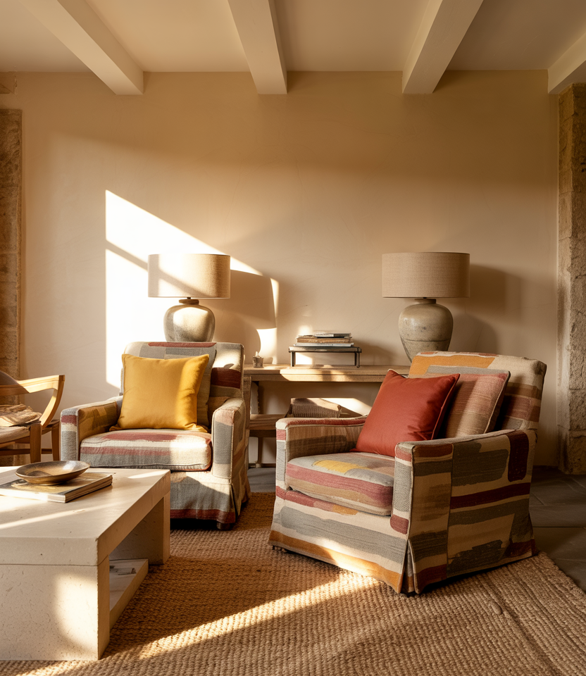 For those craving vibrancy, a French country living room can carry playful color while staying grounded. Use touches borrowed from colorful pottery, soft English cottage patterns, or living room table lamps with curved silhouettes. Layering keeps the palette cheerful rather than chaotic.