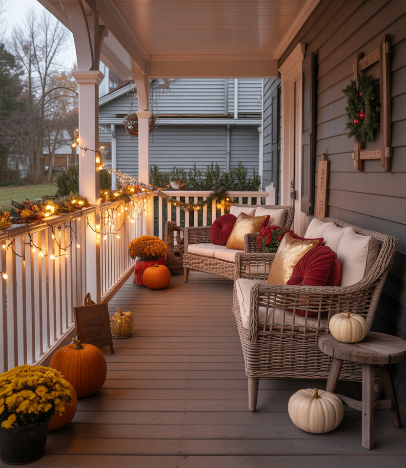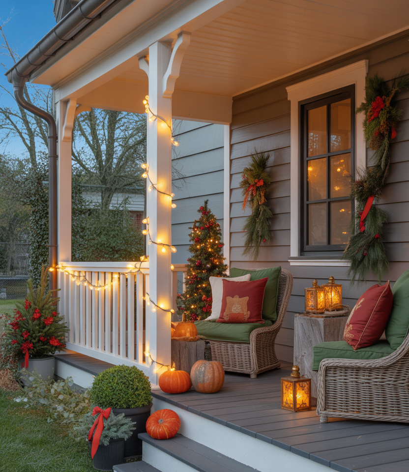 Last but not least, integrate your porch’s transition features for multiple holiday decorations as well as for seasons. Put Christmas lights around your porch railing and autumn decorations such as lanterns or gourds, but transition to wreaths or Christmas garlands during winter. Use flexible furniture that can work for various seasons, as well as a minimalist landscape design that will not require major changes with seasons. Your goal remains a stylish, cozy, yet flexible porch for every occasion.