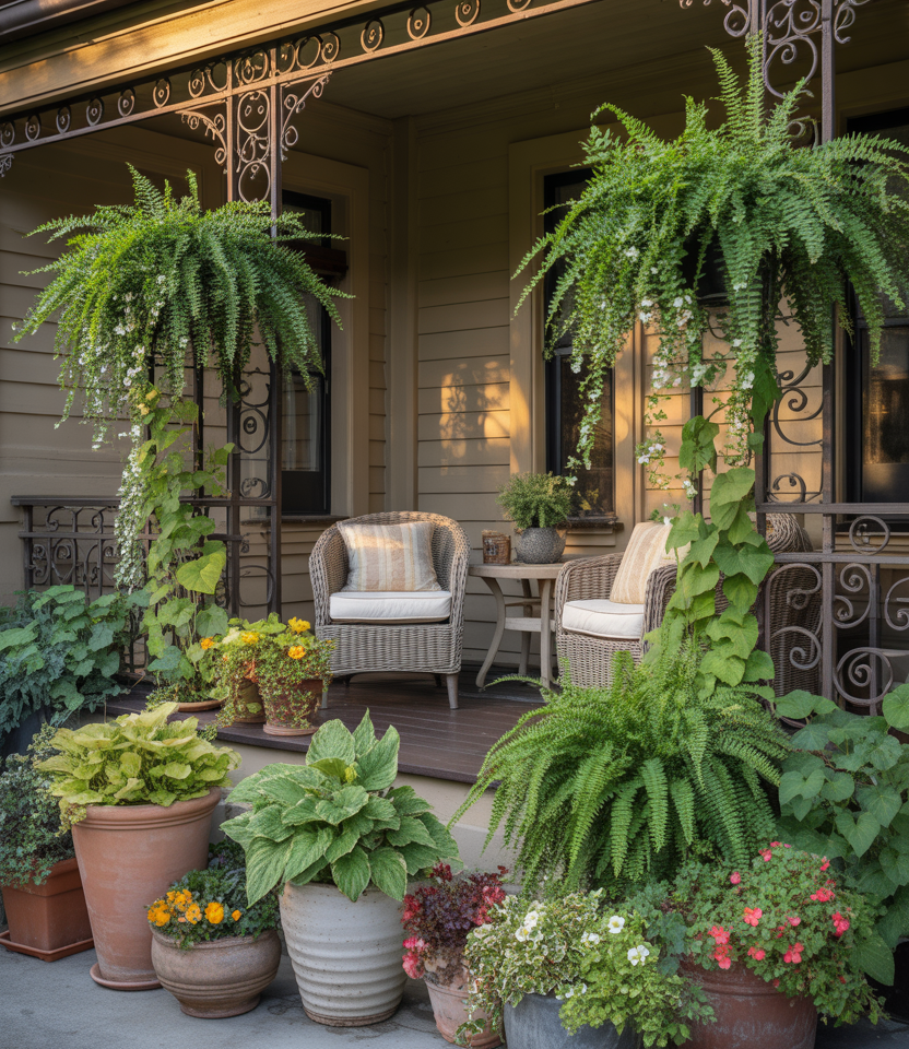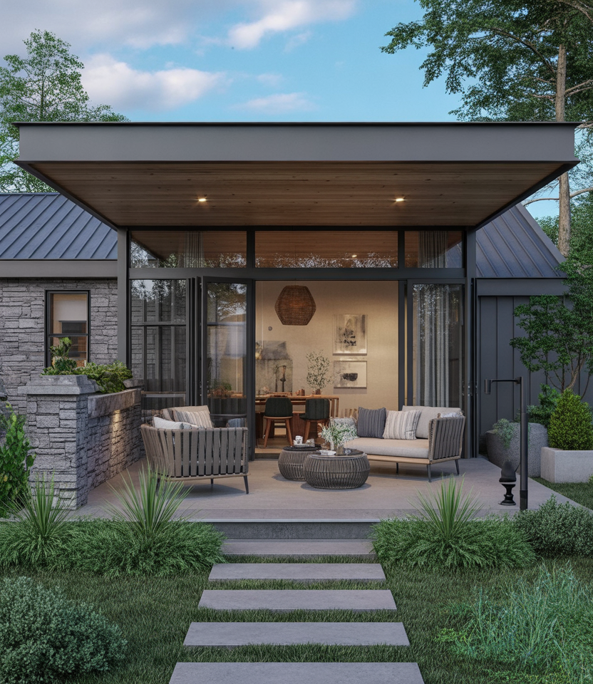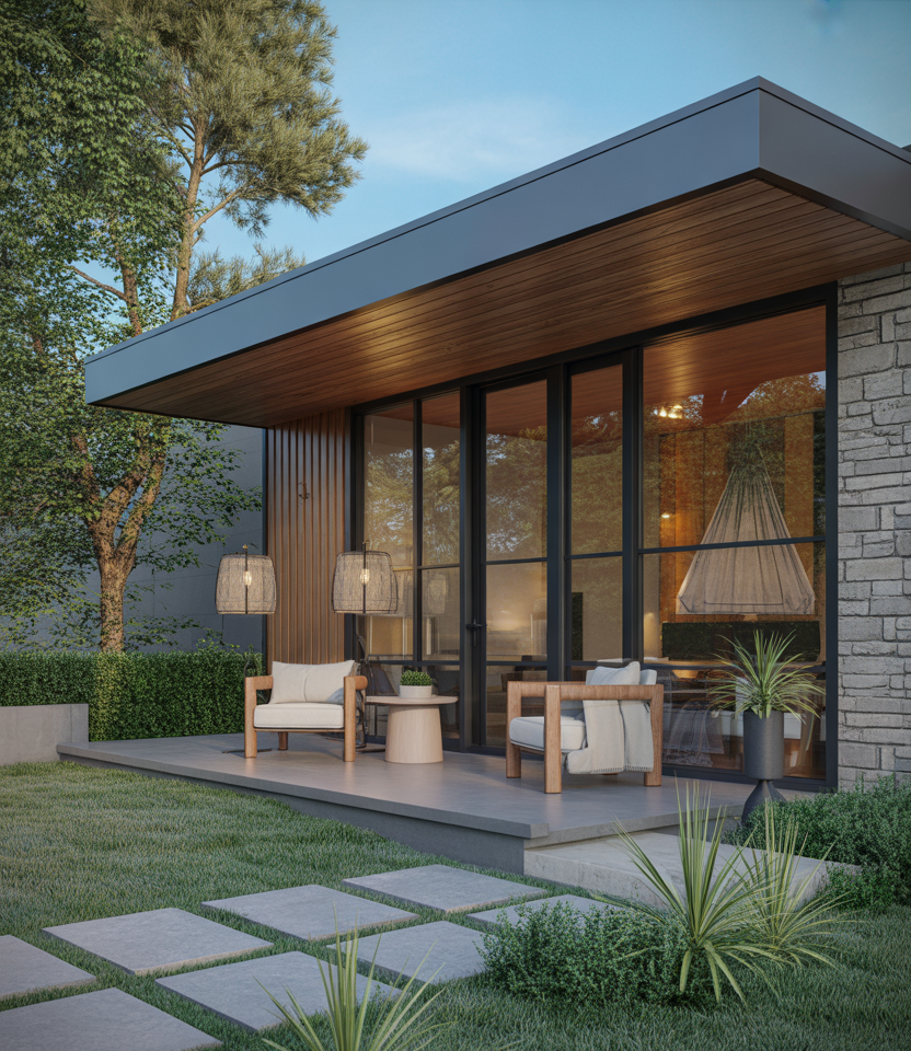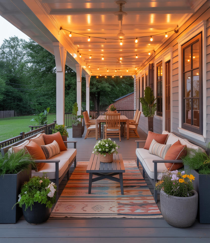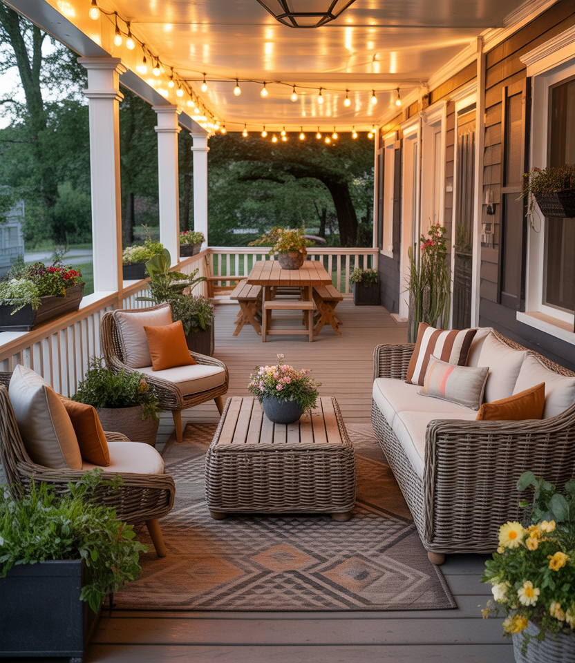 With a covered porch, your porch design for 2026 has endless possibilities. Mix wood, steel, or stone materials for a new, balanced look. Mix minimalist furniture with earthy materials for a stylish yet cozy look. Combine a modern set of planters with lighting for a comfortable evening ambiance, ensuring that functionality perfectly meets aesthetics.