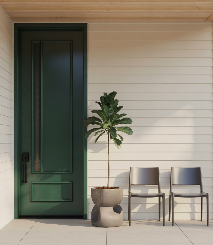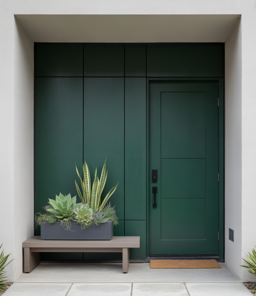According to design forecasts, one of the easiest updates for 2026 is a bold front-door color. Designers point to rich greens, blues, and even black as standout options. Keep the rest of your porch clean and minimalist: a sleek bench, one or two impactful planters, and maybe a modern lantern. That way, the door becomes the hero of the scene, and your porch reads as contemporary and intentional.