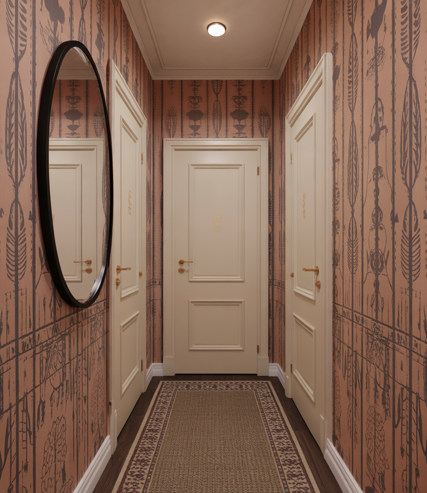 A short hallway benefits enormously from patterned wallpaper, a major 2026 revival. Even a bold print feels manageable in a compact transition zone. I once used a soft botanical pattern to refresh a small entrance, and guests asked which boutique designer created the look. This style is perfect for apartments, cottages, and warm home interiors that seek character.