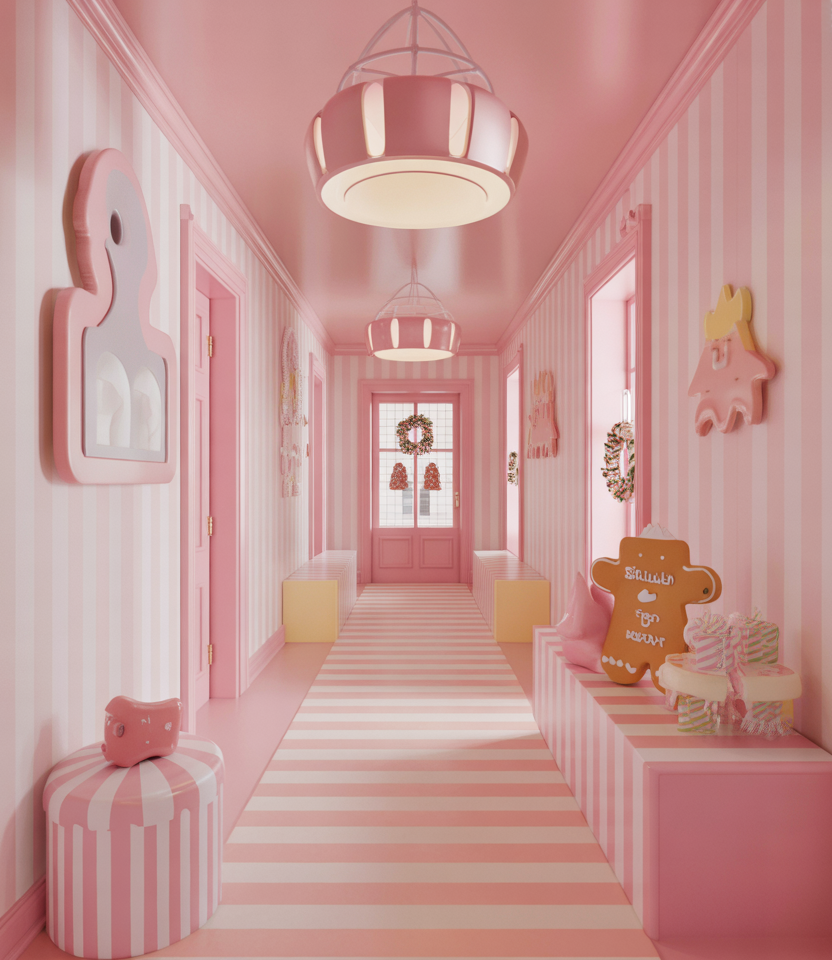 A sweeter twist on festive décor uses soft pastels, candy stripes, and subtle gingerbread tones without forming a full gingerbread house theme. This approach suits home hallways for families who enjoy holiday color without intensity. I once tried pastel trim in a dorm hall, and it brought cheerful warmth without overwhelming the small space.
