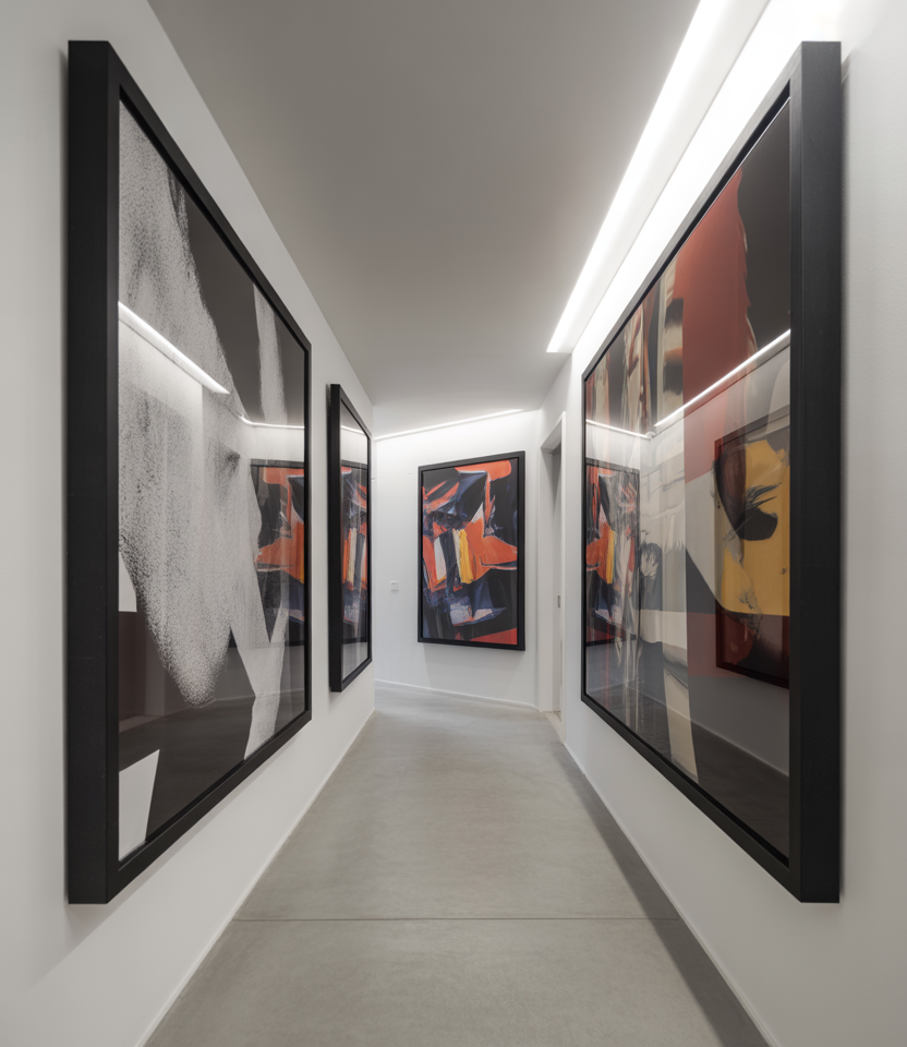 In a long hallway, oversized frames or large abstract prints look intentional and modern. Designers like Bobby Berk advocate for bold wall art instead of cluttering tabletops. A past client hung a single panoramic cityscape in a rental dorm hallway, instantly elevating the space. This approach suits home entries, apartment corridors, and even creative classroom areas needing personality.