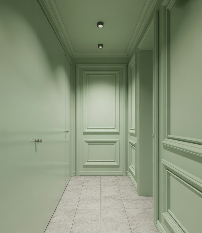 For fans of soft tones, a seafoam-green palette channels the sea without overt coastal themes. This brightens up a short hallway and works very well in modern home interiors or even a calming classroom space. I once painted a seafoam stripe in a friend’s studio corridor, and with that fresh tone, the whole area felt lifted. Ideal for peaceful, minimalist 2026 décor.
