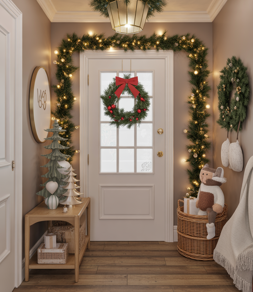 A Christmas-inspired hallway can feel nostalgic without becoming overwhelming. Mix subtle garlands, warm lights, and even a playful nod to Whoville if you enjoy Dr. Seuss’s charm. Last year I dressed a friend’s upstairs landing with simple greenery, and guests lingered there just to take in the warmth. Works beautifully for festive home entries or school areas celebrating the season.