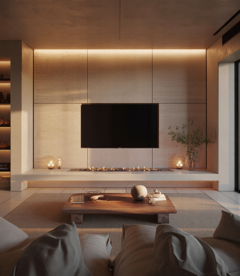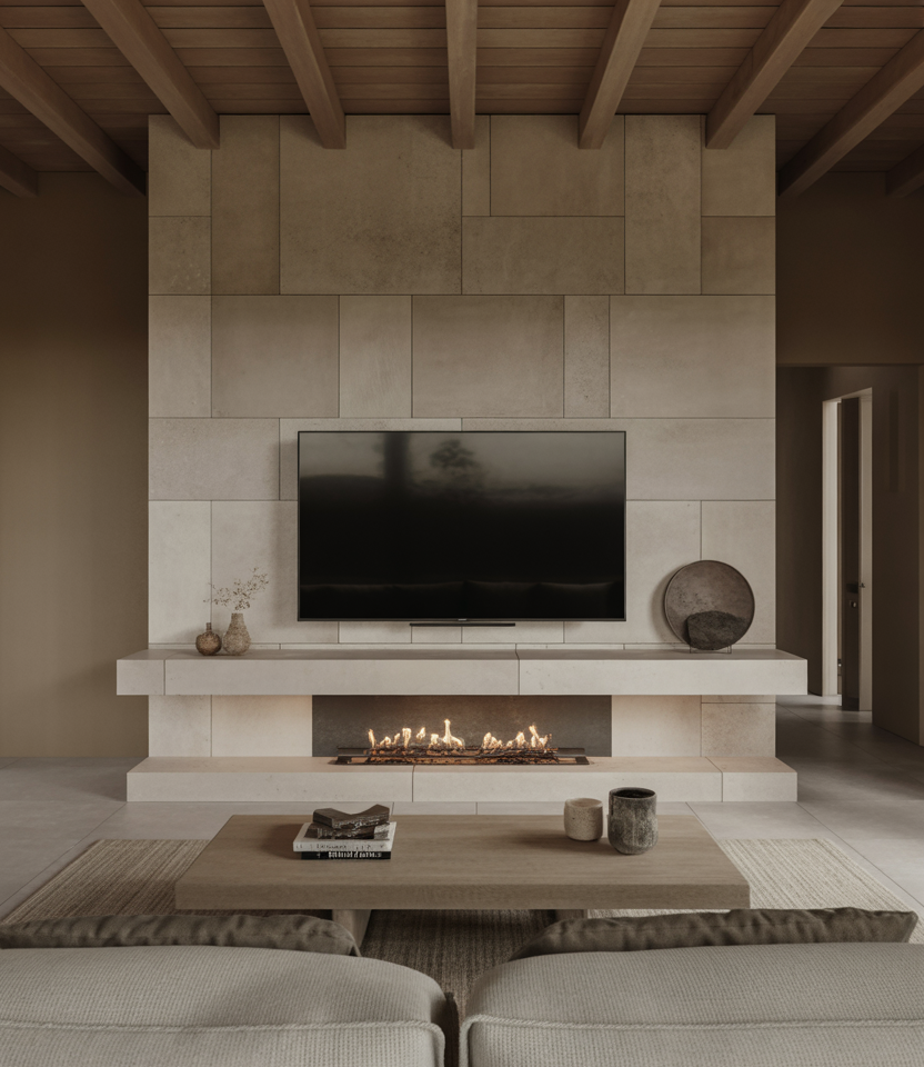 A single stone slab anchors the wall, and a low hearth becomes instant seating. It whispers luxury and fits luxury interior design without shouting. I prefer honed finishes to avoid glare; pair with earthy decor and call it done. Works with fireplace modules or solo media walls and still feels elevated in 2026 living rooms.