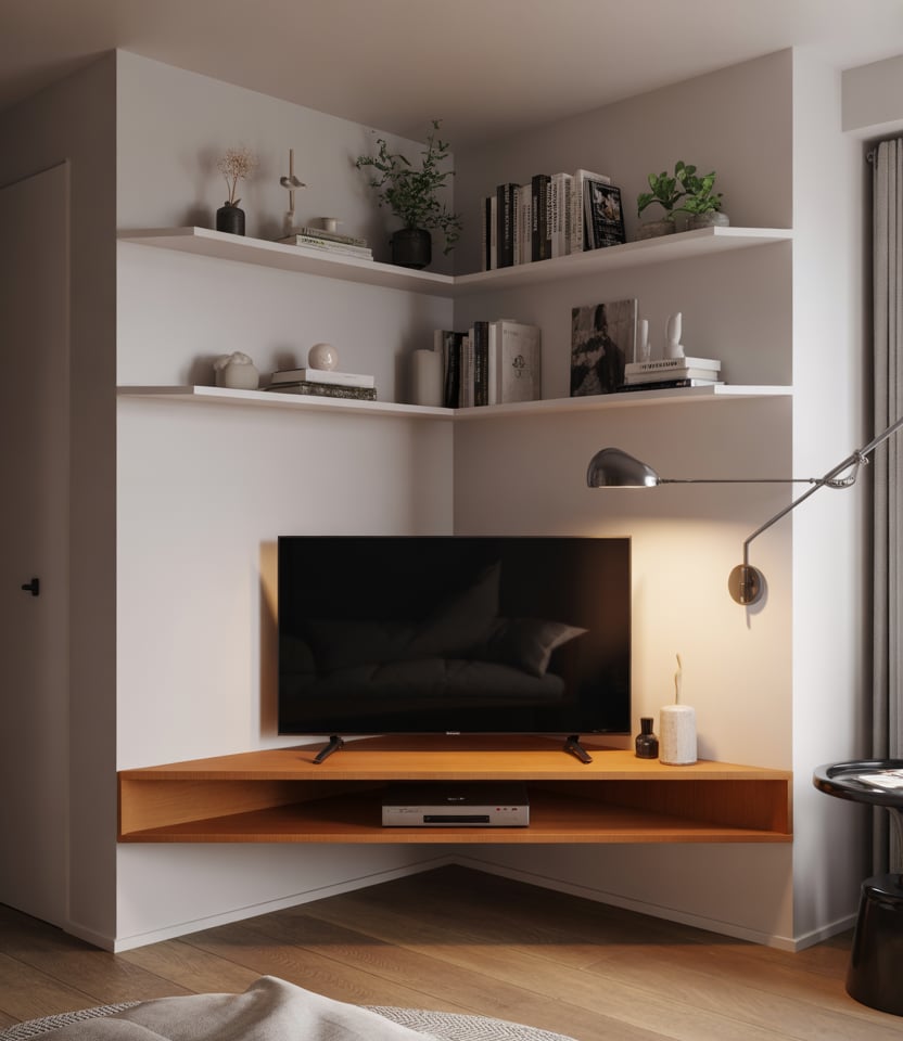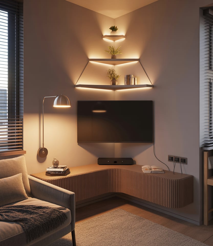 When the only wall is a corner, angle a triangular console and float shelves along both sides. I solved a tricky apartment like this; suddenly the sofa faced something. It’s honest design ideas for small space plans, and with a swing-arm lamp the asymmetry feels intentional. Hide cables ruthlessly and celebrate the nook—cozy wins in 2026.