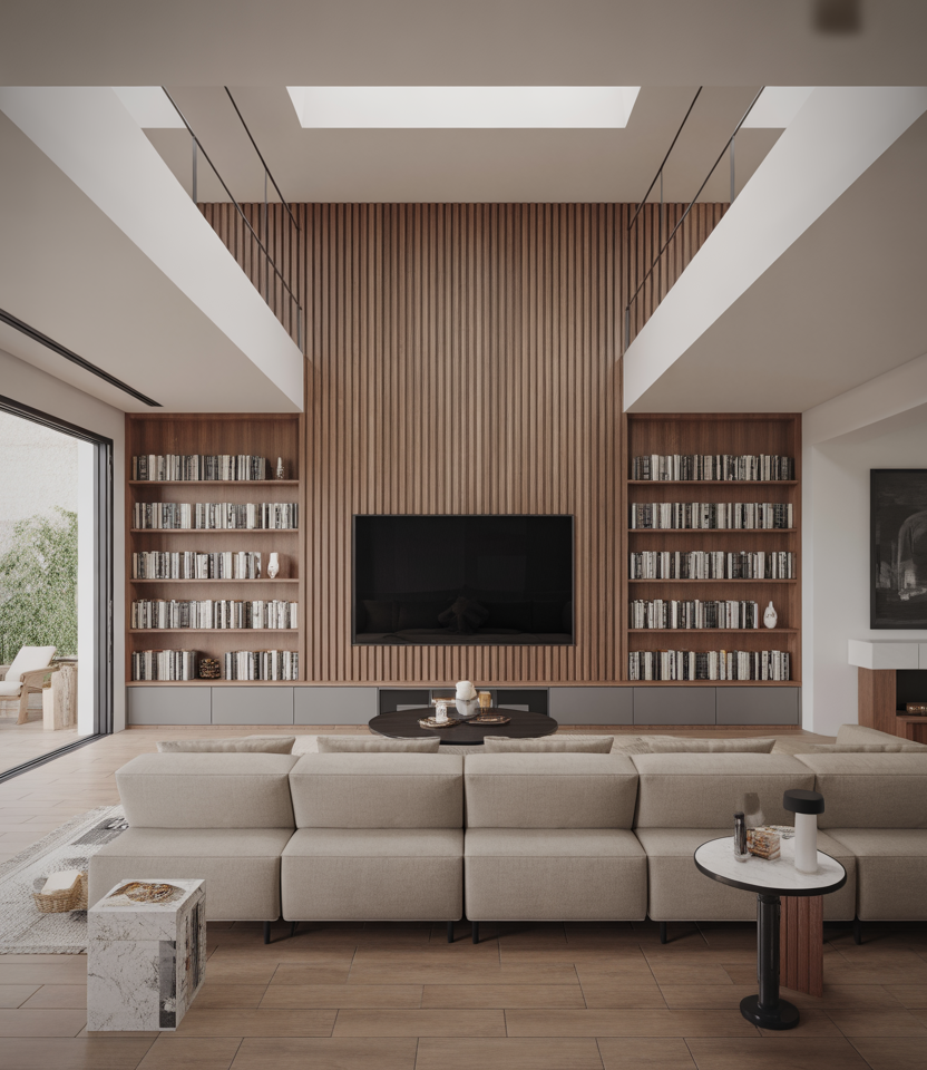 In 2-story rooms, a vertical media spine unifies the height. I ran paneling up to a loft line and tucked books to one side; the wall finally earned its keep. It’s controlled theater—design with a point of view—great for large volumes and modern classic envelopes. Keep wiring accessible, and let proportion do the drama in 2026.