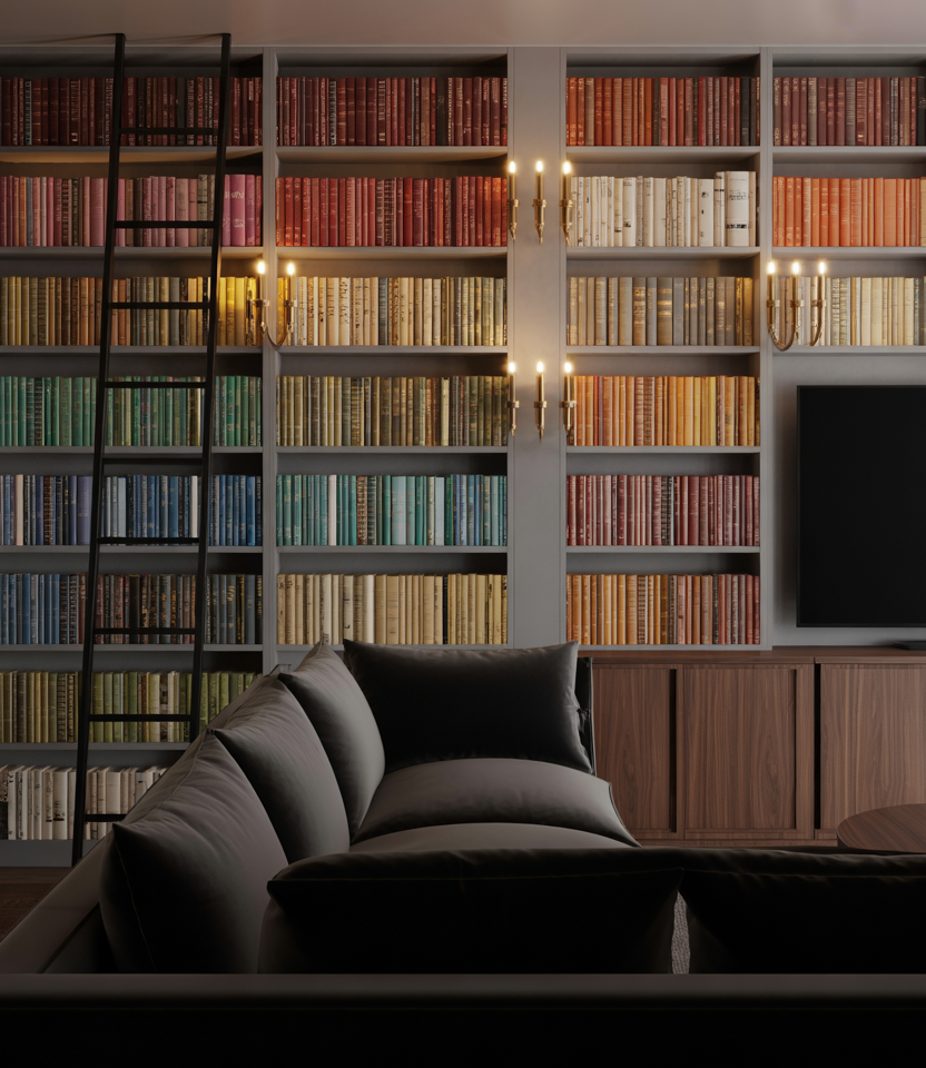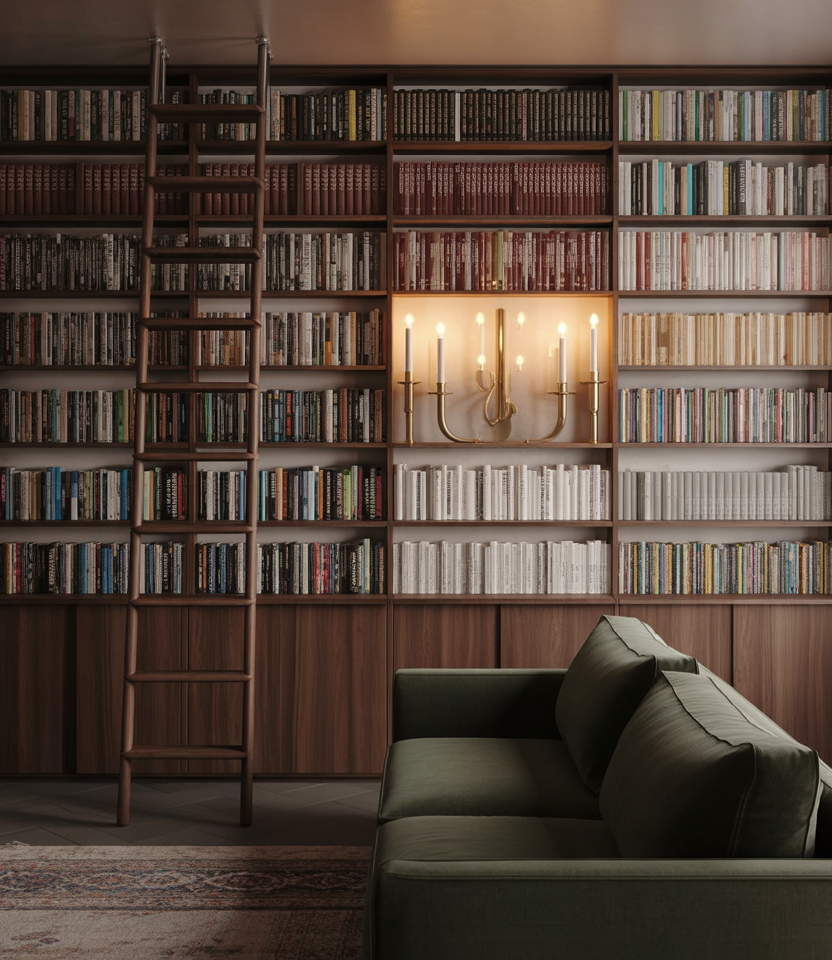 Slim built-ins (8–10″) turn dead zones into story engines. Color-organize spines and tuck a few horizontals to calm the read. Integrate a pair of candle sconces for glow and keep lower shelves kid-friendly. This works over a couch, on long walls, or flanking ideas with a TV for visual balance. For ideas for 2026, books and light remain unbeatable designs—intellectual warmth without visual noise.