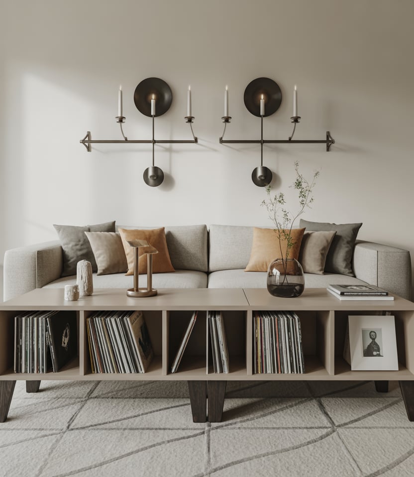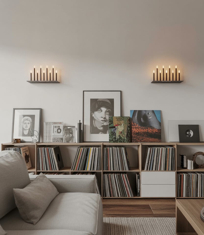 A slim display rail can be used to show favorite albums and art books, allowing for the rotation of art without putting new holes in the walls. It can be mounted near seating for guests to browse. One pair of the above candle sconces adds glow. Keep the rest of the wall clear to emphasize the spines and covers. This is Ideas’ modern idea but can be easily warmed with wood tones. In Ideas 2026, culture on display beats cluttered media stacks. It is social, stylish, and easy to refresh.