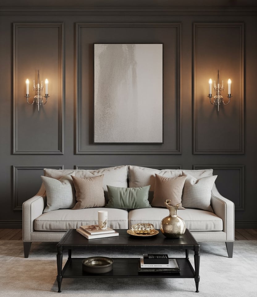 Add simple box moldings, then paint the wall, trim, and molding one tone for quiet architecture. Panels frame ideas and pictures beautifully and honor traditional bones while suiting ideas’ modern styling. Keep art large within boxes; postage-stamp pieces get lost. A pair of candle sconces between panels introduces sparkle without clutter. This elevates spec builds and rentals alike—cost-effective designs that photograph and live well in the 2026 homes.
