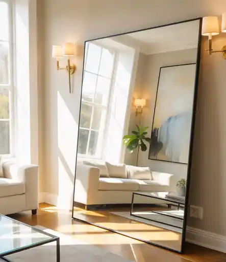 A tall mirror brightens and doubles space—classic apartment magic. Lean safely and anchor to the wall; pair with a single adjacent artwork for a conversational duo. Mirrors bounce candle sconces and daylight, supporting ideas of modern minimalism or layered eclecticism. Choose slender frames for small rooms, wood for warmth, or brass for polish. This versatile move keeps rooms open while adding a focal point—right in step with ideas for 2026.