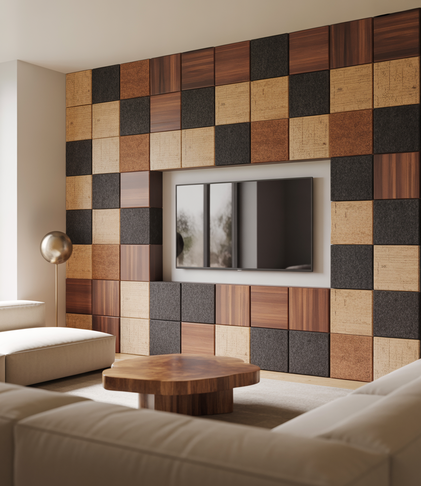 Architectural tiles sculpture a wall and hush echoes—wellness-forward ideas modern. Cork squares feel warm; felt reads tailored; wood adds rhythm. Keep furniture simple so relief patterns lead. As ideas for TV backdrops, tiles reduce glare and sound. Peel-and-stick options make this an approachable DIY weekend. In ideas for 2026, texture and acoustics share top billing—smart, tactile designs that work hard.