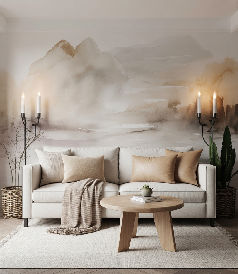 Murals aren’t all maximal. Watercolor landscapes or abstract washes behave like big art without shouting—ideal ideas for an apartment move. Use light, desaturated tones behind the couch so the room feels deeper. Add dimmers on candle sconces for a twilight glow that flatters paint transitions. Keep furniture lines clean to avoid competing stories. In Ideas 2026, gentle murals deliver serenity and a cinematic mood—dreamy designs with easy living.