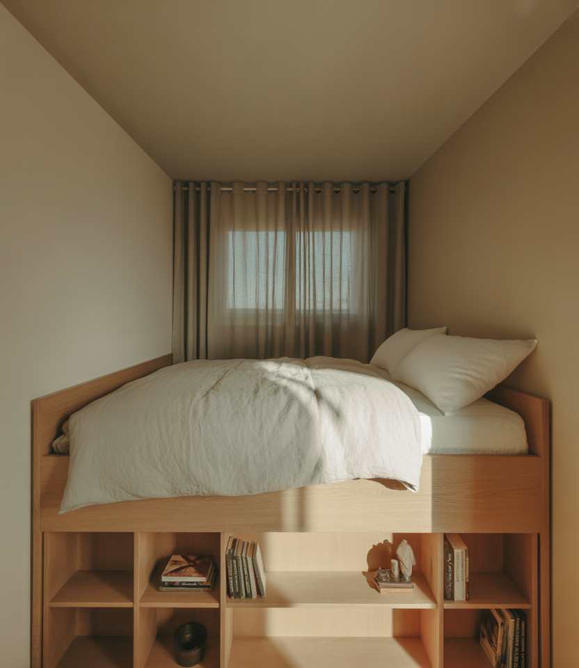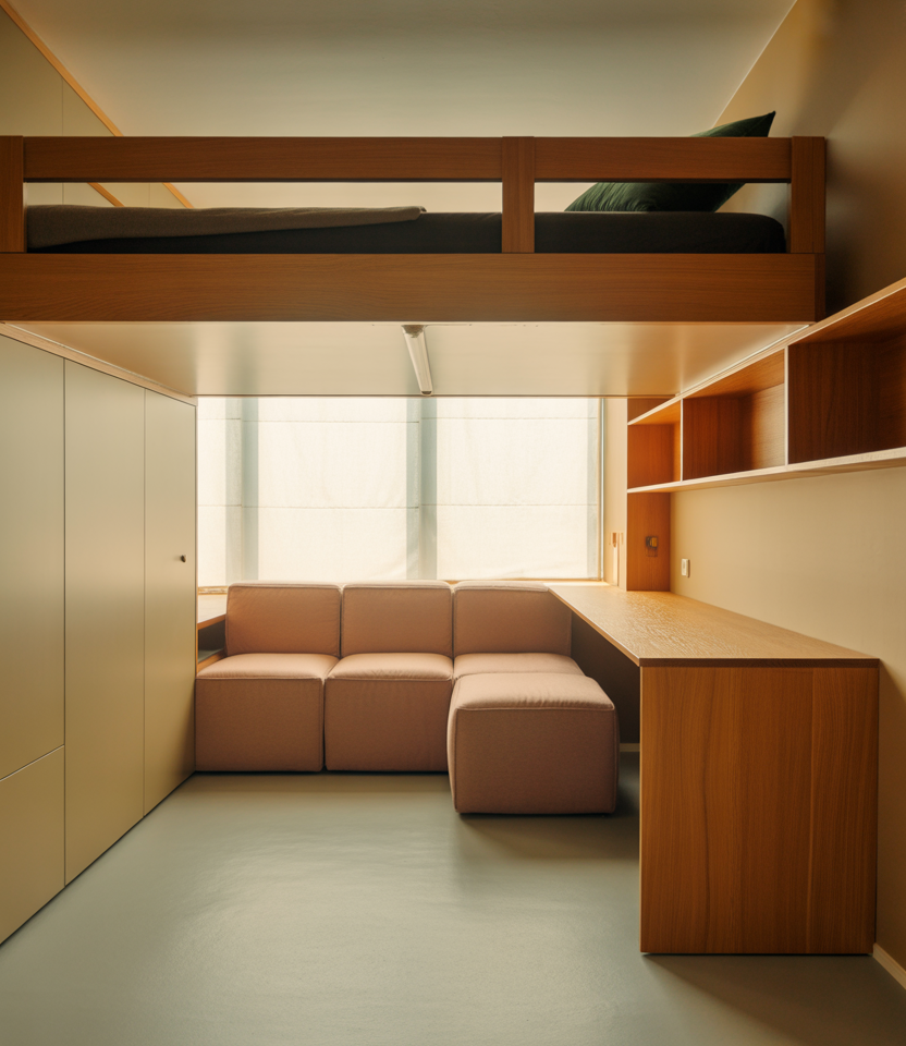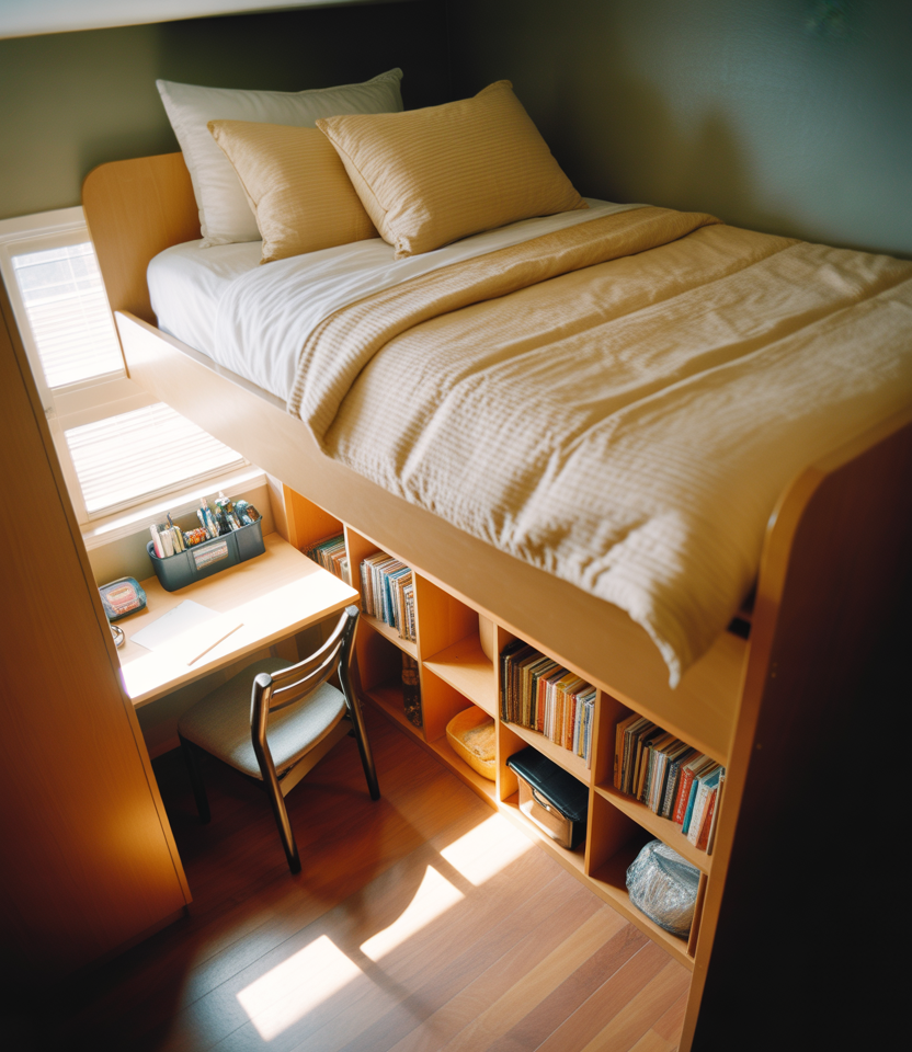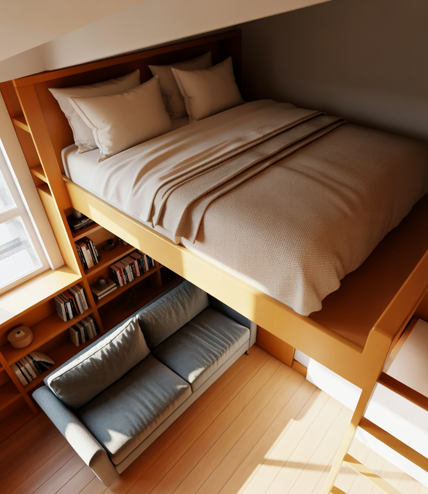 In a room with limited flexibility, a loft bed can entirely change how the space functions. These designs focus on adaptability, pairing elevated sleeping areas with modular furniture below. They’re especially effective in small rooms with space-saving design layouts where one change has to do a lot of work.