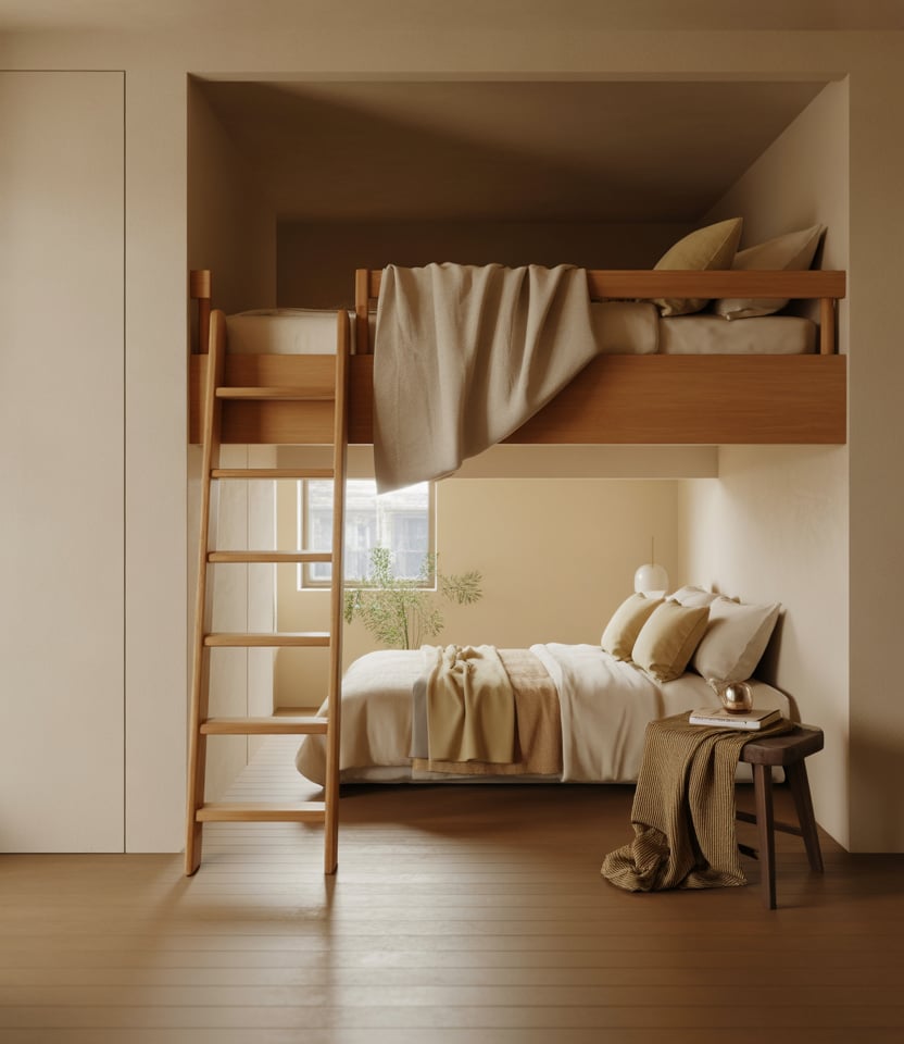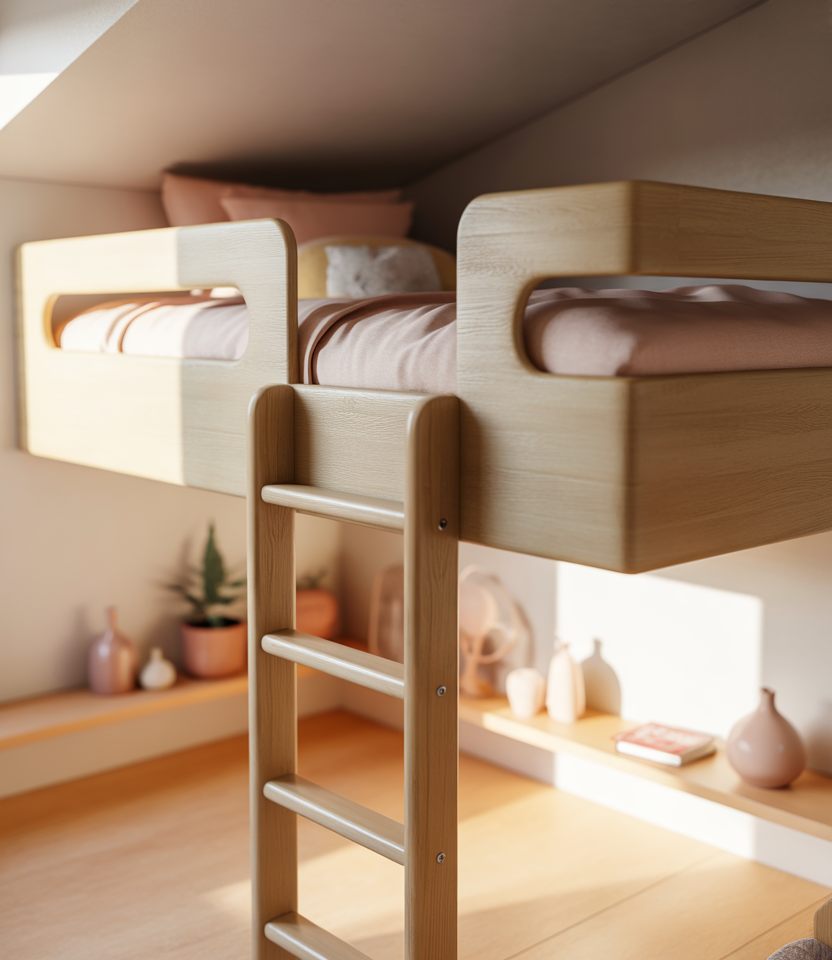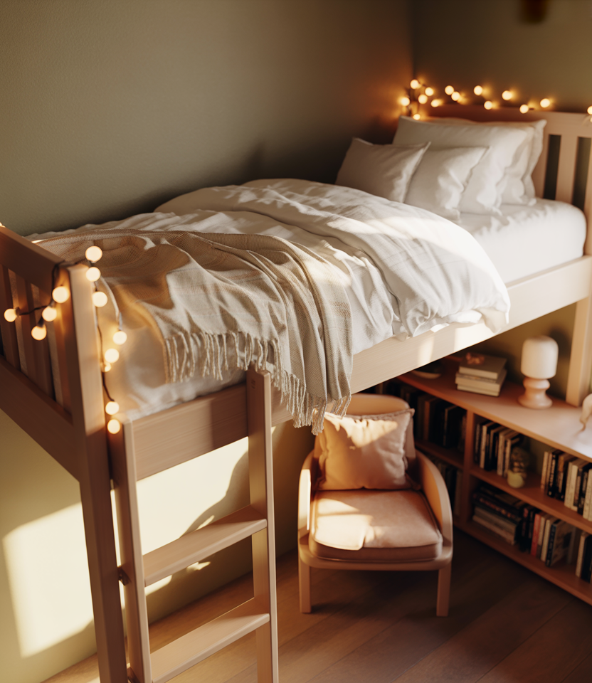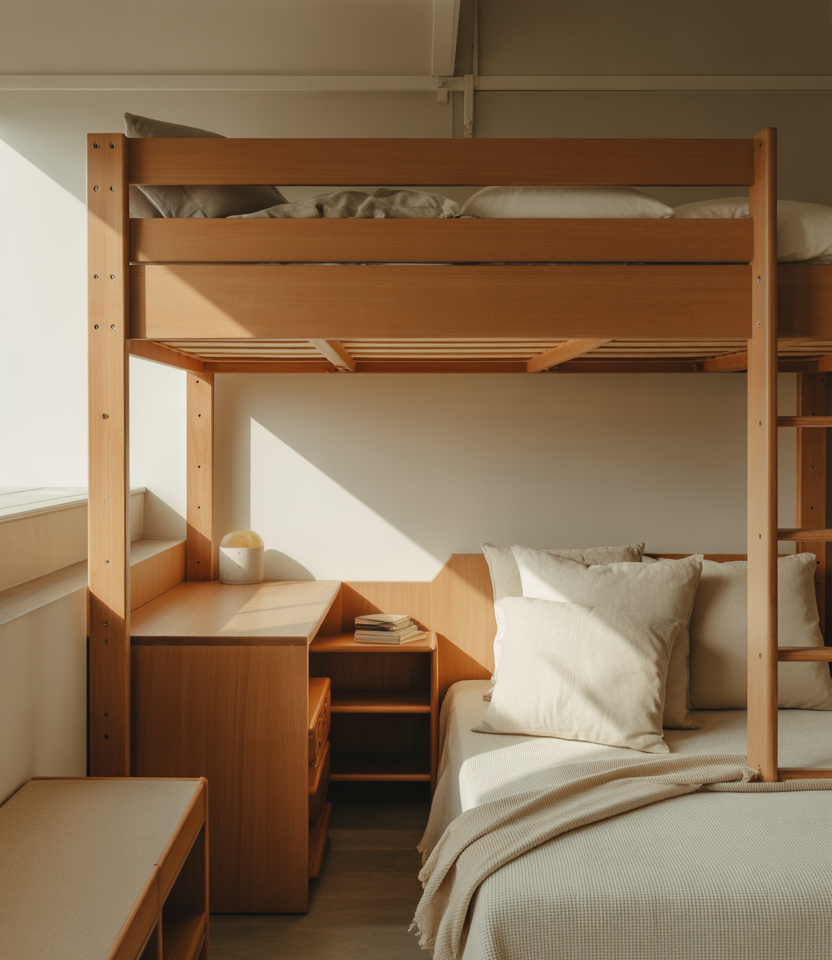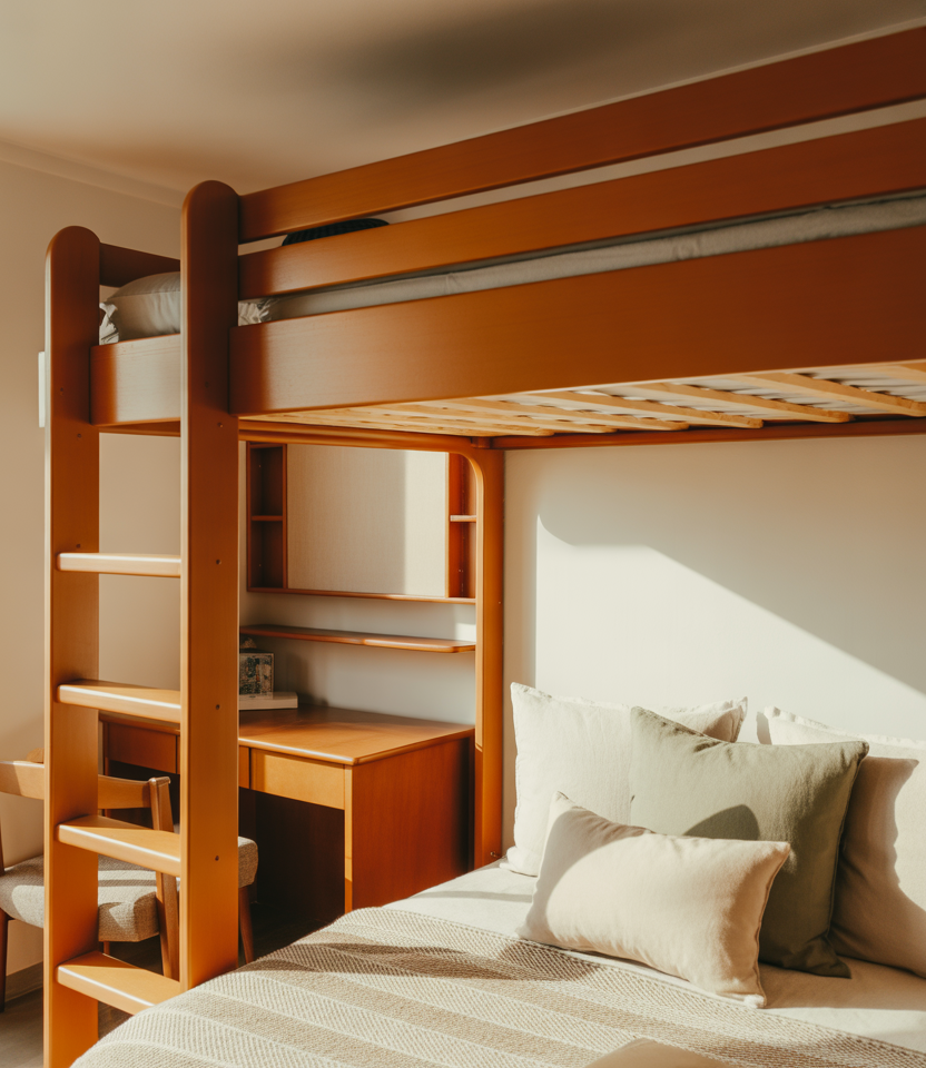 When siblings share a bedroom, loft beds become a quiet lifesaver. In small rooms for kids’ setups, a cozy loft frees up play space while keeping sleep zones clearly defined. Designers are favoring warm woods, rounded rails, and soft finishes that feel comforting rather than overly utilitarian, making shared rooms feel calmer and more intentional.