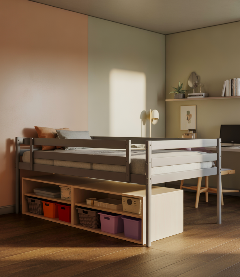 For families watching spending, short loft beds offer a smart balance in small rooms and low-budget teen spaces. Lower height means simpler construction, fewer safety concerns, and an easier setup while still unlocking valuable floor space.