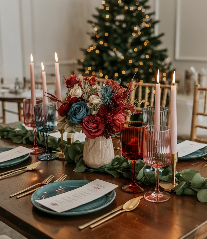 Bid farewell to traditional flowers and instead cluster disco balls of various sizes together for dramatic centerpieces. The candlelight starkly contrasts with the mirror surface, scattering plenty of light freely across the room and energizing the space with glamour and joy between a club and a wedding. Incorporate metallic table runners or acrylic risers to add dimension to your table decor. Its an untamed choice, yet for a party that’s meant to celebrate every single detail, it’s totally right. Designers often suggest disco balls for New Year’s themes because they are a perfect marriage of nostalgia and modern style.