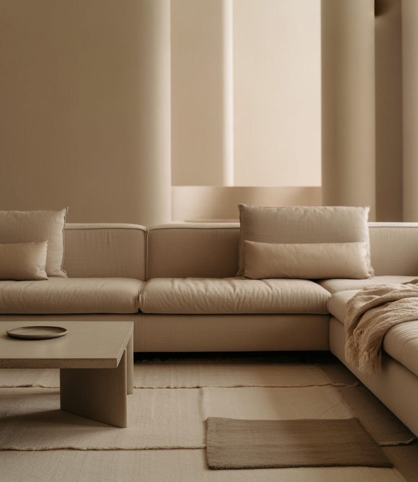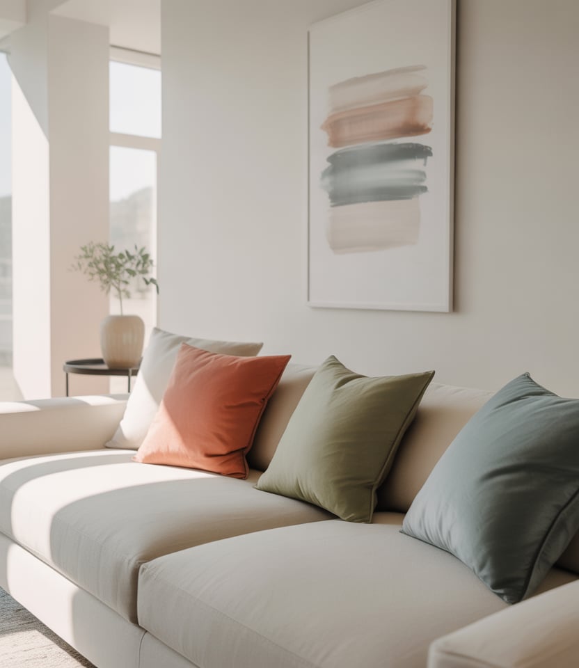 Stack layers of nearly identical hue values-multiple shades of grey or beige-so the room feels subtle but rich. This monotone layering is ideal for neutral minimalist interiors; works especially in apartments with limited light.
