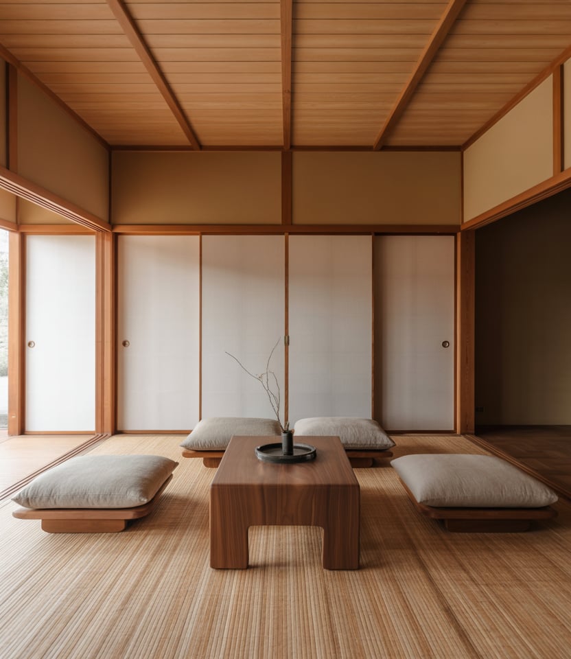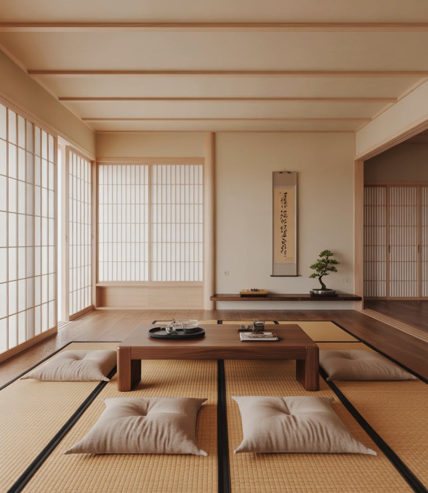 Go with the Japanese minimalism: low-profile furniture, tatami-style rugs, and subdued decor. Favor negative space and high-quality materials including bamboo, linen, and matte ceramics. This is especially great for tiny homes or minimalist apartments where every single item must earn its space.