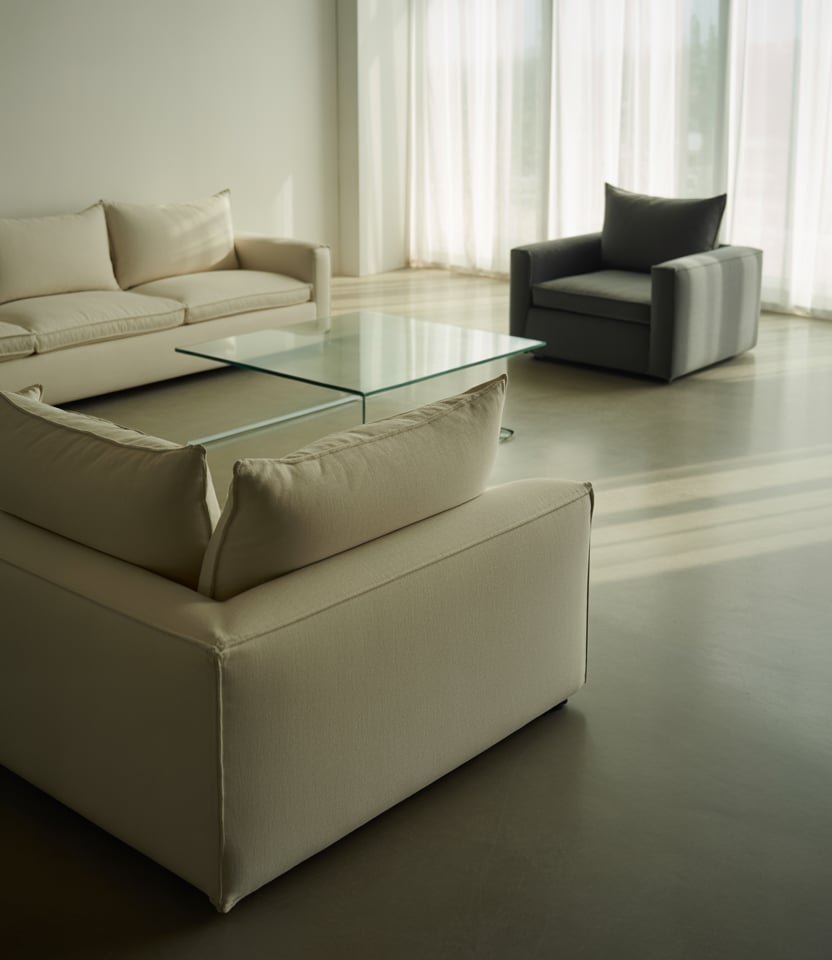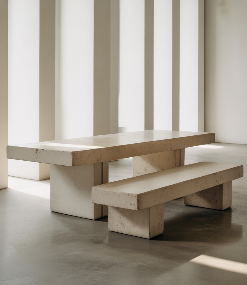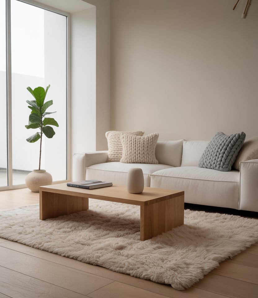 For a bigger block-piece instead of many tiny bits-go for one large bench, one slablike coffee table. This avoids visual fragmentation. Especially in tiny homes or small apartments, fewer bigger pieces seriously glitter on minimalist.