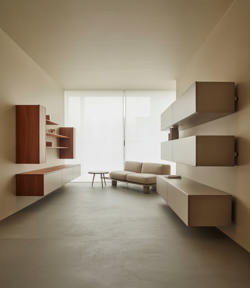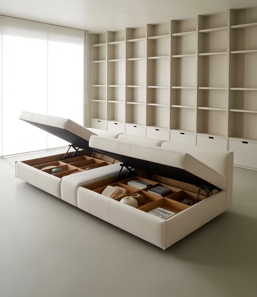 Must stay clutter-free in minimalist rooms. Install hidden storage; benches with lift-up tops, built-in cabinets behind panels, and storage under sofas. Quite necessary in tiny homes and small apartments to maintain minimalist form. For inspiration, check the new innovations from IKEA or Muji.