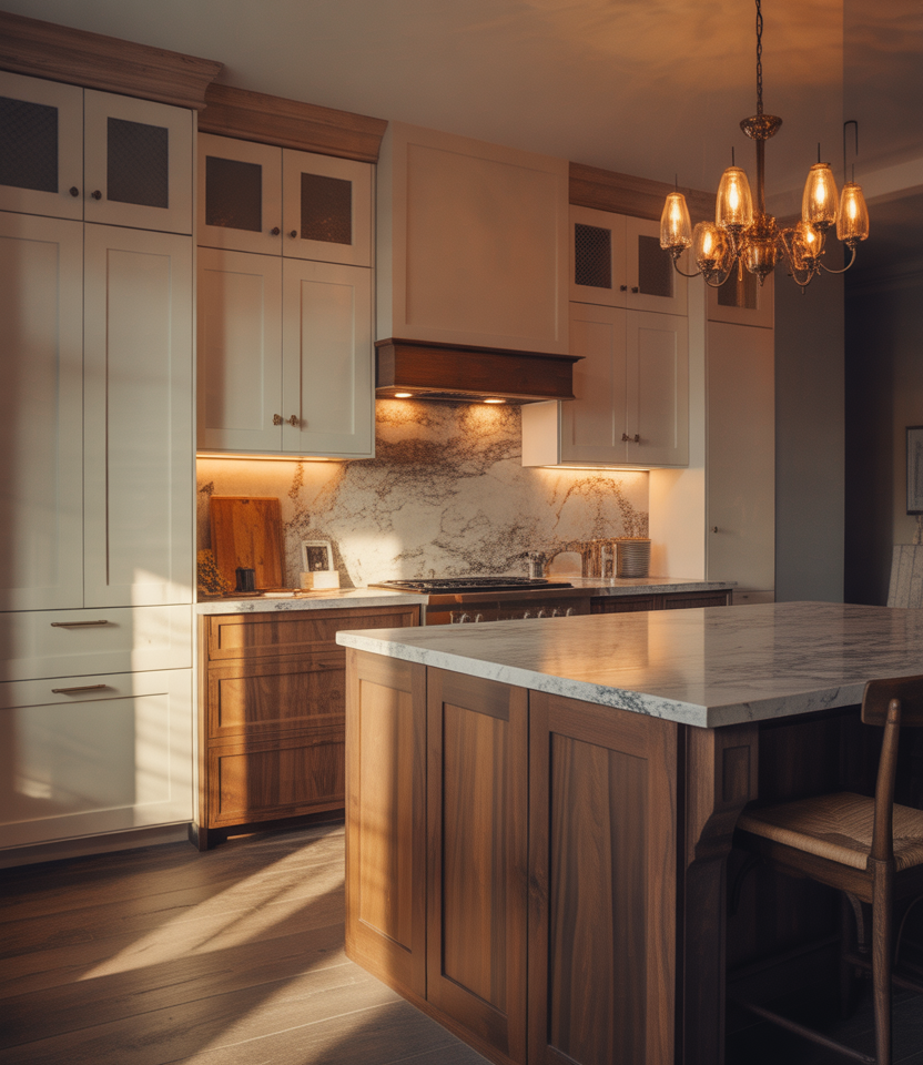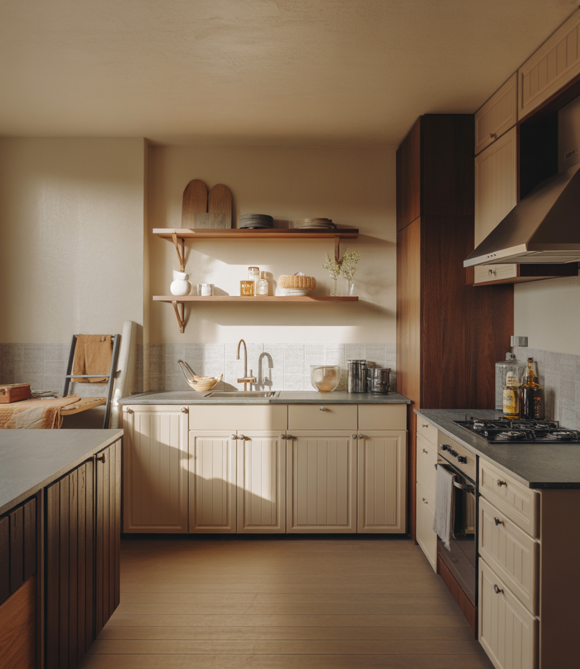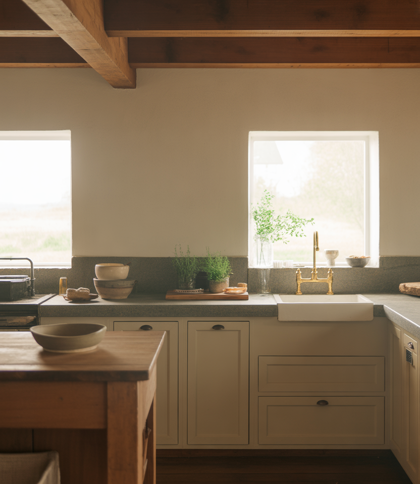 Beyond task lighting, farmhouse kitchens in 2026 rely on expressive light fixtures to shape atmosphere. Simple forms, warm metals, and thoughtful placement elevate everyday moments. When paired with understated design ideas, lighting becomes emotional rather than purely functional.