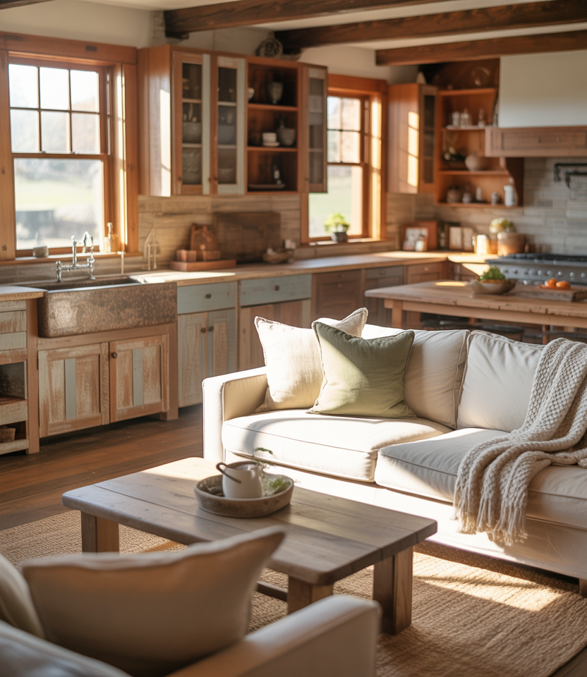 Open layouts continue to blur the line between kitchen and living room. In 2026, modern farmhouse spaces use shared materials, consistent colors, and subtle zoning to keep everything cohesive. The kitchen feels like part of daily life, not a separate work zone.