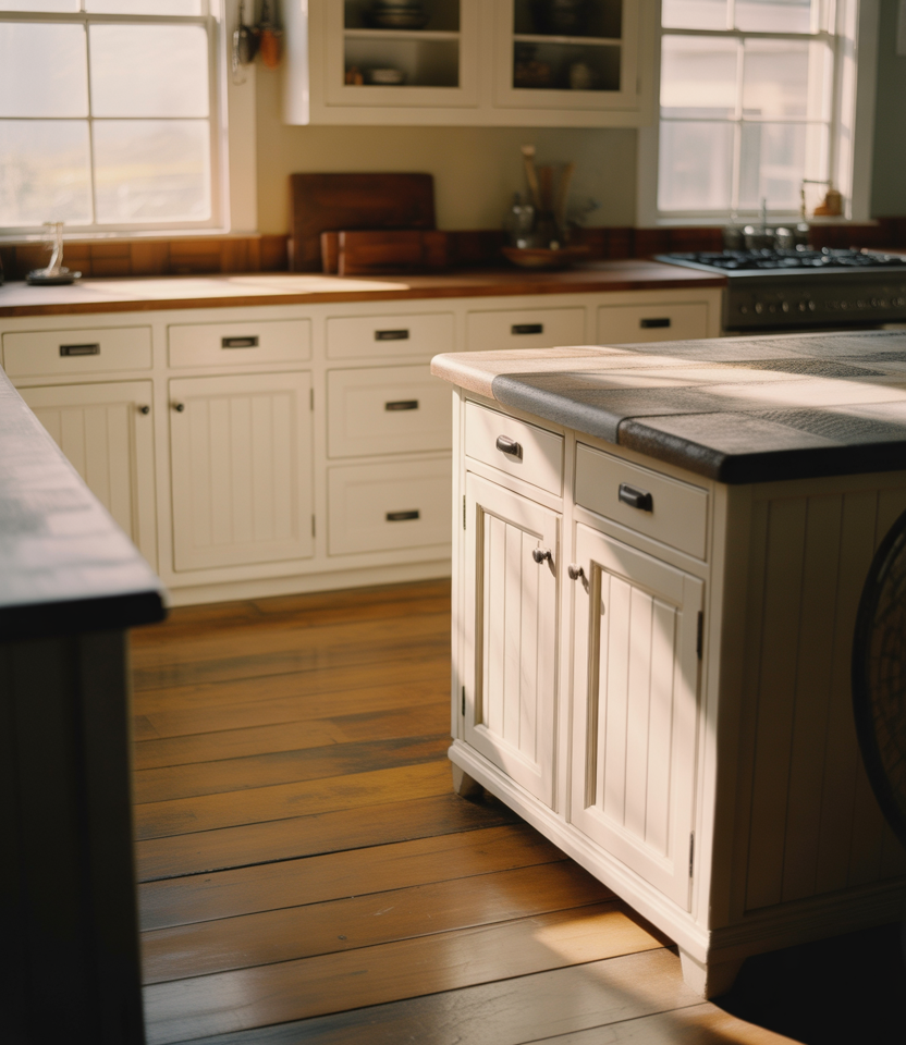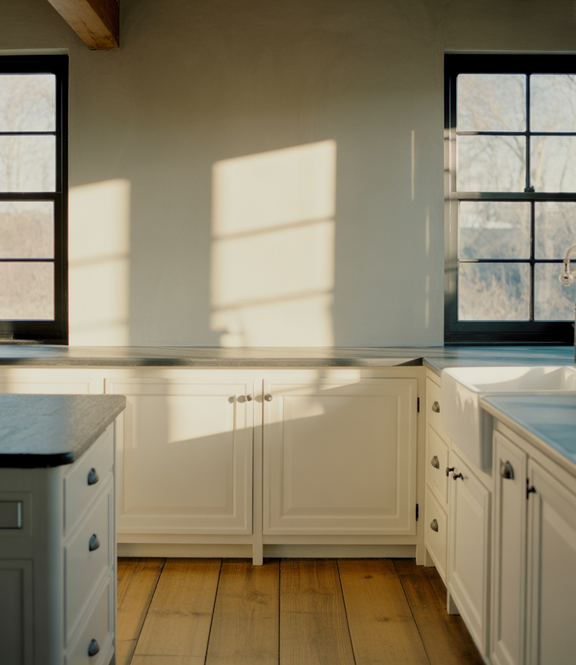 In modern farmhouse kitchens in 2026, cabinets are quietly doing more work. Slim shaker profiles, softened edges, and mixed finishes add depth without feeling decorative. Paired with warm neutrals and subtle hardware, cabinetry becomes the backbone of the room rather than its headline, letting texture and proportion carry the design.
