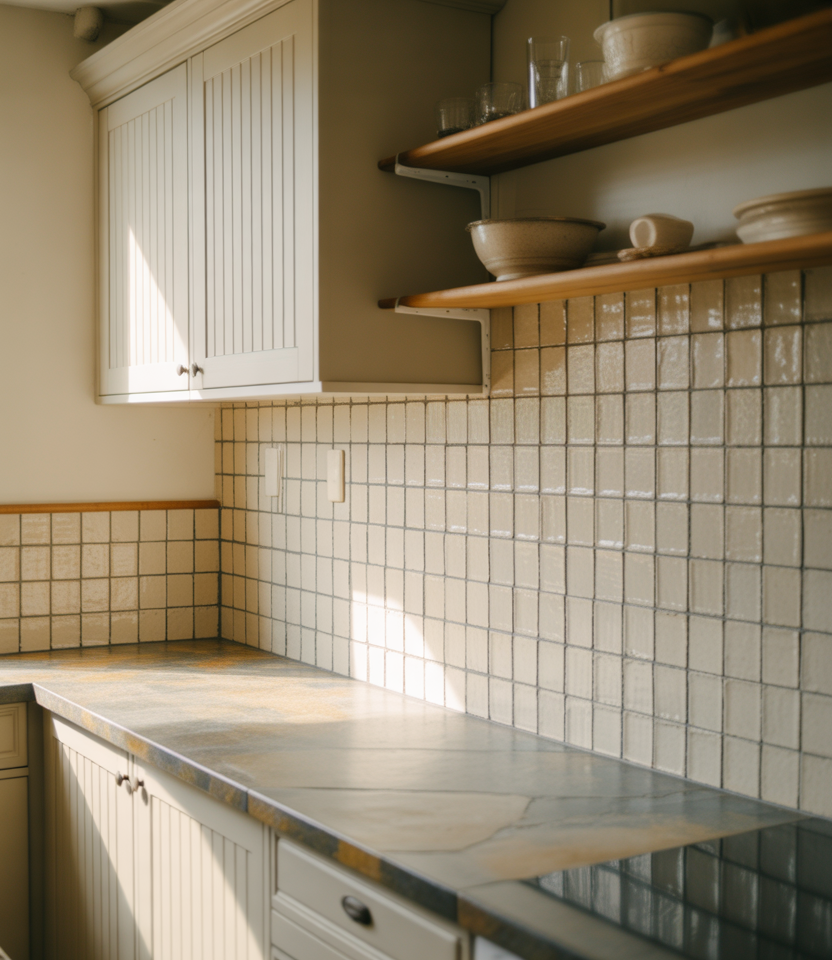 The backsplash with white cabinets is becoming more expressive, especially through handmade-look backsplash tile. Subtle variation in color and texture adds depth without overwhelming the kitchen. In 2026, backsplashes quietly support the room’s personality rather than dominating it.