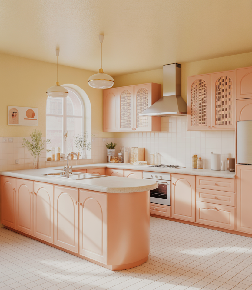 Retro kitchens are returning with a lighter hand. In 2026, designers blend retro charm with contemporary layouts, often softened by white surfaces and modern appliances. Curved corners, pastel accents, and vintage-style hardware feel nostalgic without turning kitschy.