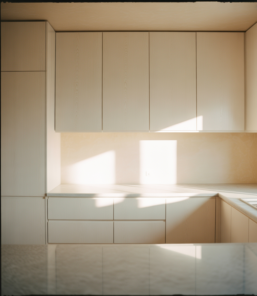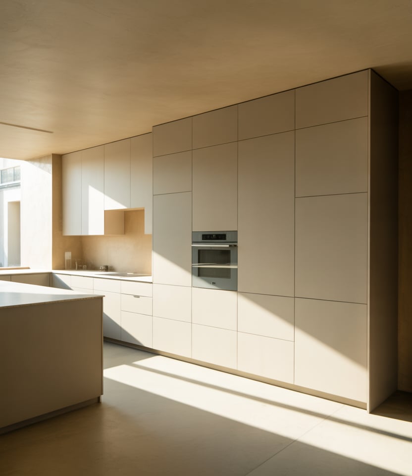 Minimalism is evolving toward smarter solutions. Minimalist kitchens now rely on concealed storage, push-latch cabinets, and integrated appliances to keep visual clutter low. Paired with simple lines and neutral finishes, the result feels calm and efficient.