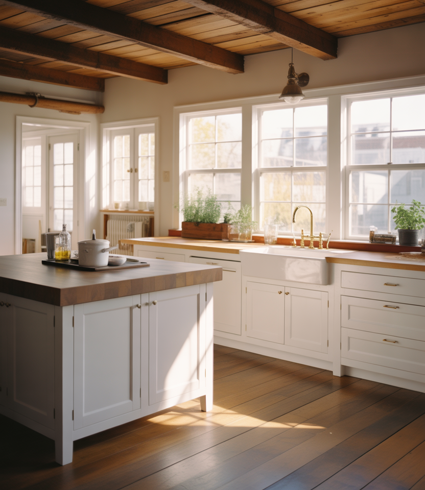 Rustic kitchens are being refined rather than replaced. In 2026, rustic textures mix with modern layouts and subtle luxury touches. Natural beams, textured stone, and handcrafted details feel intentional within clean architectural lines.