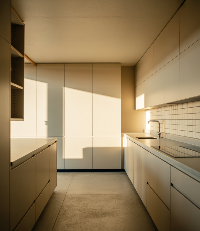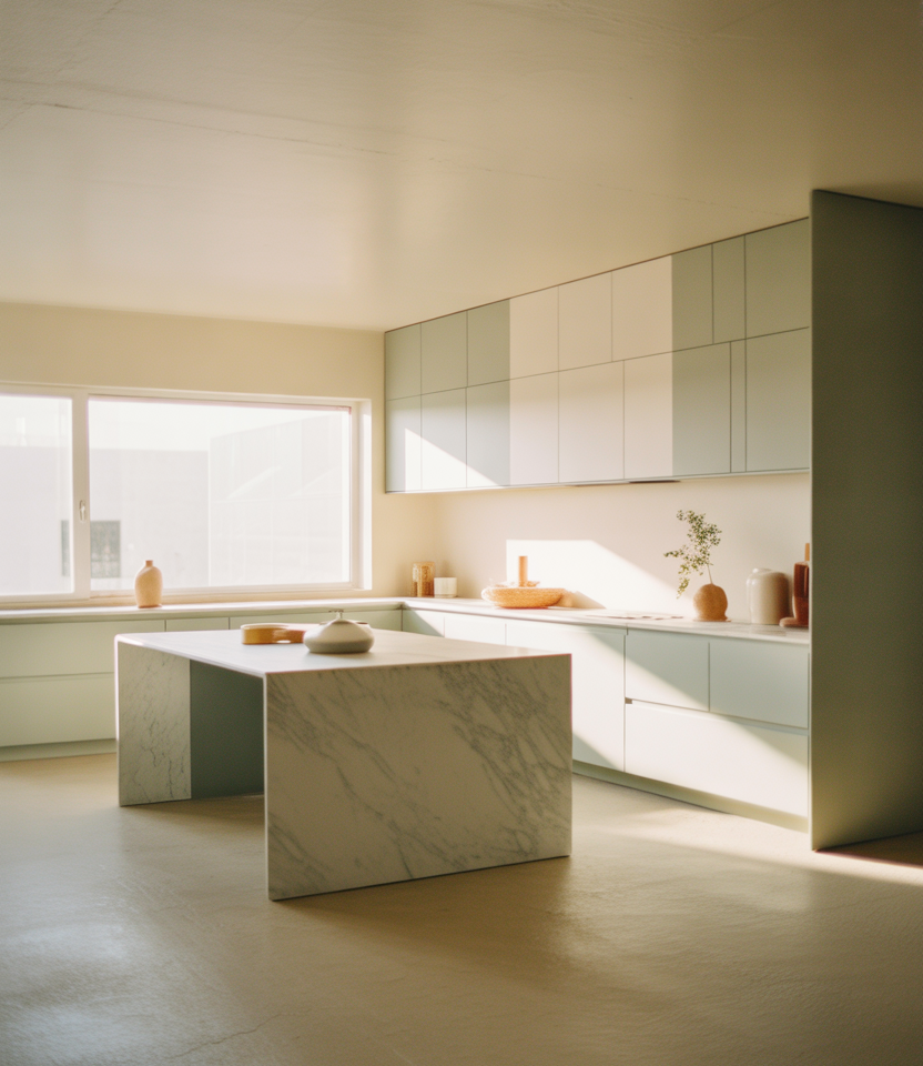 Minimalism is evolving toward smarter solutions. Minimalist kitchens now rely on concealed storage, push-latch cabinets, and integrated appliances to keep visual clutter low. Paired with simple lines and neutral finishes, the result feels calm and efficient.