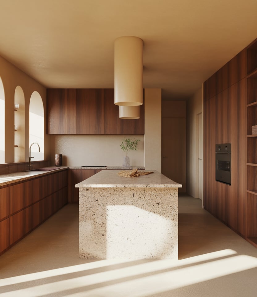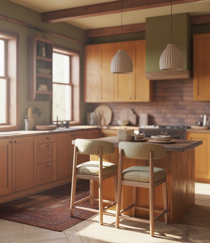 Comfort is becoming a design priority. Cozy kitchens layered with earthy tones and organic materials feel more like living spaces than work zones. Soft lighting, warm woods, and inviting seating encourage people to linger long after meals.