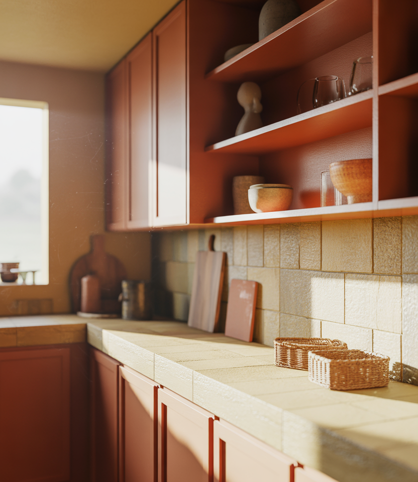Earth tones are grounding modern kitchens in 2026. Earthy palettes mixed with organic materials and subtle rustic touches bring warmth and texture into contemporary layouts. Clay-colored cabinets, stone counters, and handmade-looking tile feel collected, not styled.