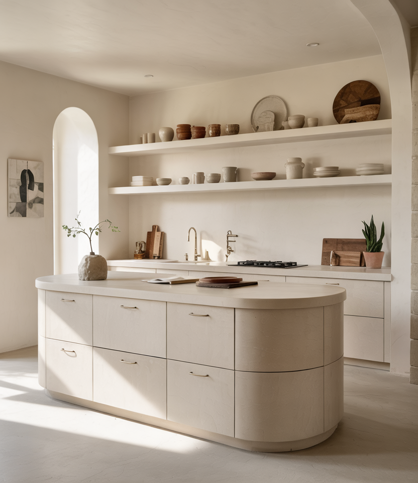 Curved islands and rounded shelving bring a gentle sculptural feel, blending modern design gestures with subtly shaped profiles. These forms pair beautifully with thoughtful color combination choices that soften the room. In 2026, curves help break up rigid lines, giving kitchens a welcoming tone without losing contemporary appeal. A practical insight: curved elements improve circulation, especially in tighter areas, reducing bump points around busy prep zones or island corners. They’re surprisingly functional for families and cooks who move constantly through the space.