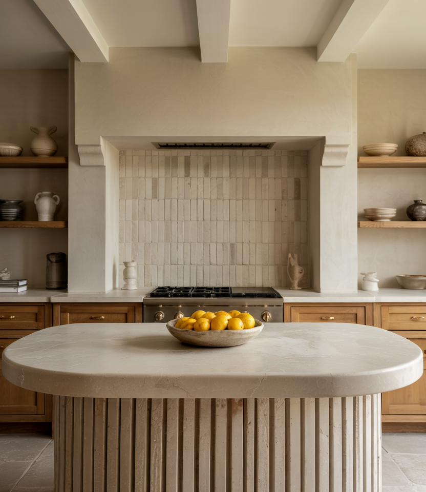 Ribbed stone islands and fluted backsplashes are taking kitchens into a more artisanal direction. Pairing gentle veining with touches of modern design detailing and a hint of color combination contrast gives the room quiet drama. A few wooden accents keep the look grounded and warm for everyday living. Budget/price angle: choosing one standout stone feature—like a textured island front—delivers maximum impact without requiring a full-slab renovation, making it a smart splurge-and-save strategy.