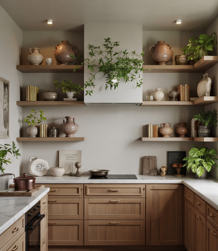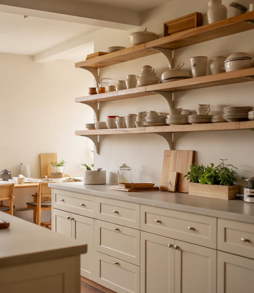 Open shelving is evolving from decorative to highly functional, especially when shaped with intentional design ideas and framed by airy open layouts. Mixing everyday dishes with a few aesthetic objects keeps shelves useful without feeling cluttered. Real homeowner behavior: many Americans are swapping bulky upper cabinets for selective display shelves to keep essentials visible and make small kitchens feel more breathable.