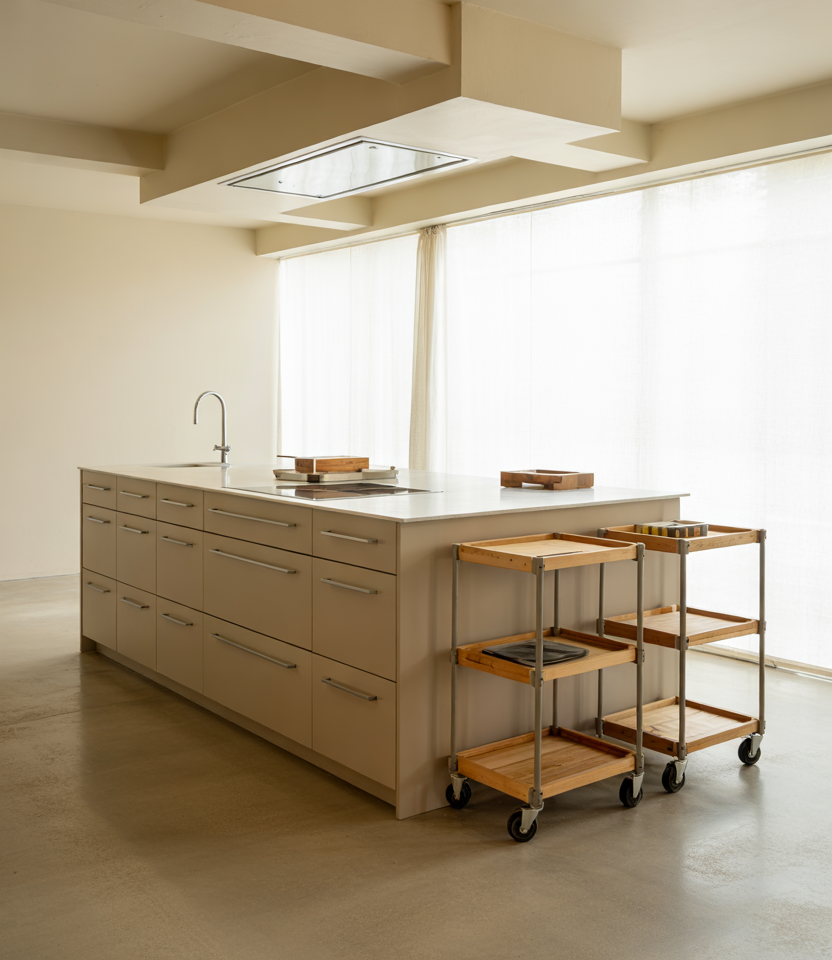 The feeling of adaptability in a kitchen is achieved by flexible cabinet blocks and mobile storage carts. Modular layouts and subtle Indian craftsmanship cues further enhance this adaptability. When coupled with an open plan, such design keeps the room fluid and ready for everything from cooking marathons to casual weekend hangs. American lifestyle context: modular kitchens work beautifully for households that host frequently yet need quick cleanup and fast rearranging—from brunch spreads to weeknight homework stations.